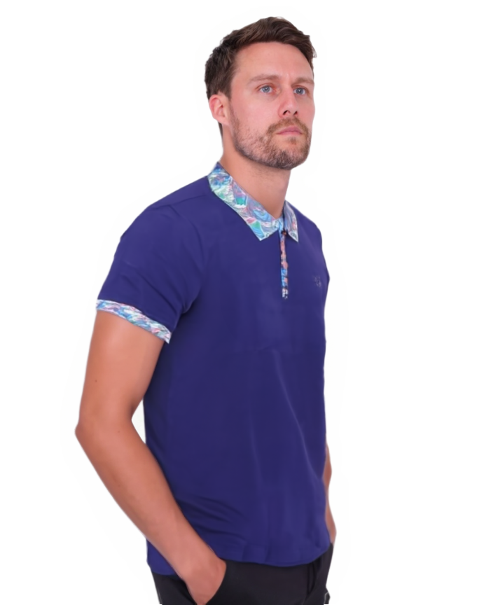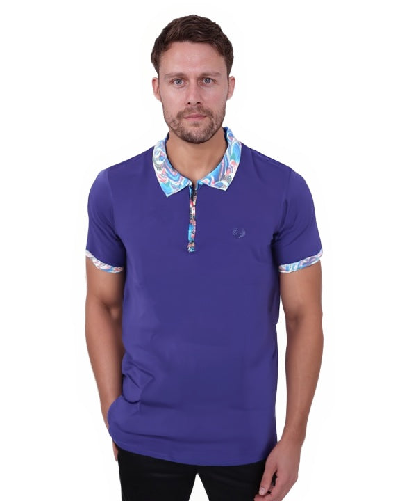 Introducing the Purple Polo T-Shirt With Paisley Collar, a stylish addition to your wardrobe. This polo features a unique paisley design on the collar, adding a touch of sophistication to a classic look.