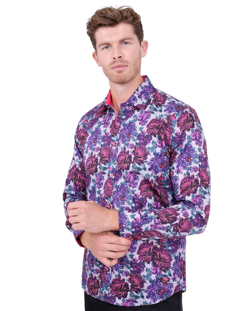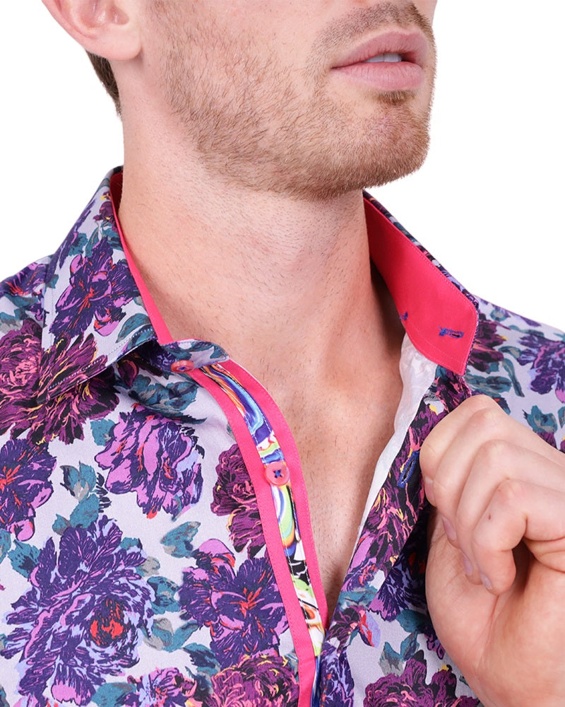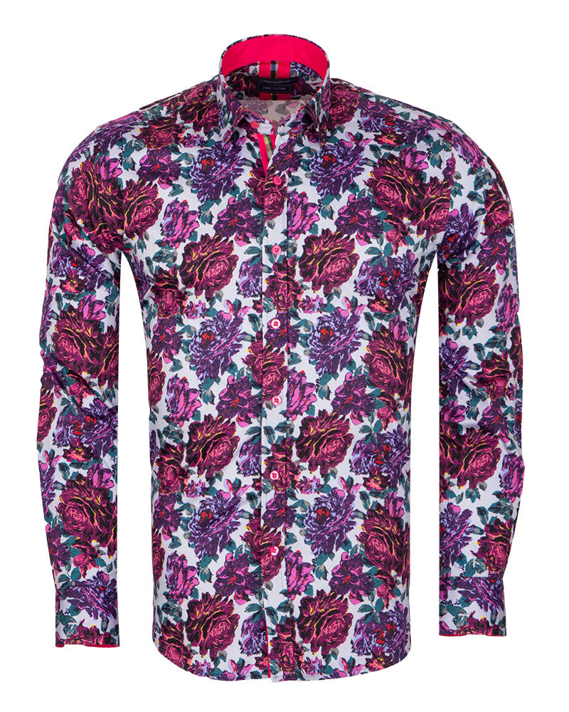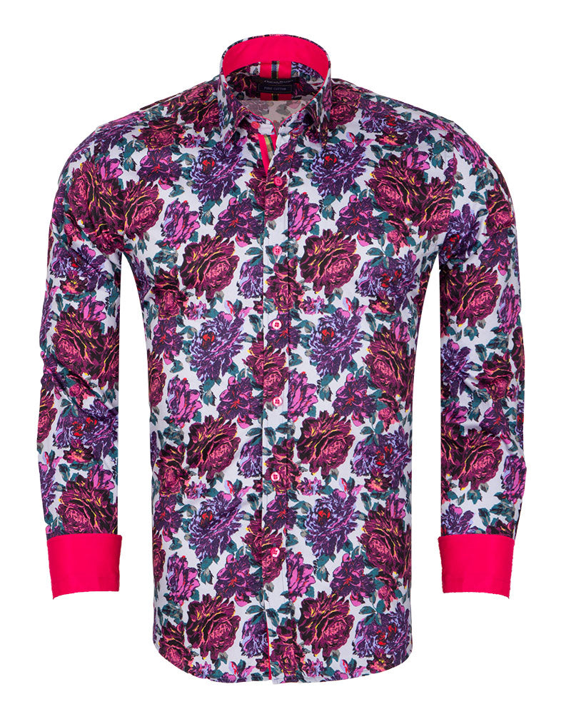 Introducing the Purple Rose Print with Matching Handkerchief, a stylish addition to any wardrobe. This shirt features a beautiful rose print that adds a touch of elegance to your outfit.