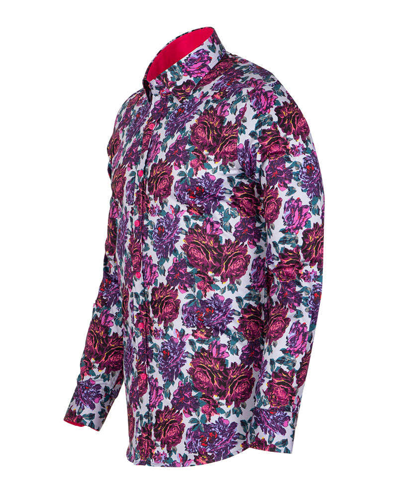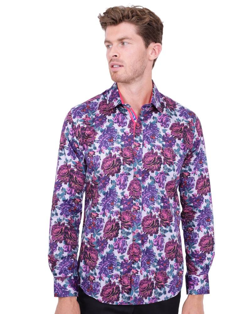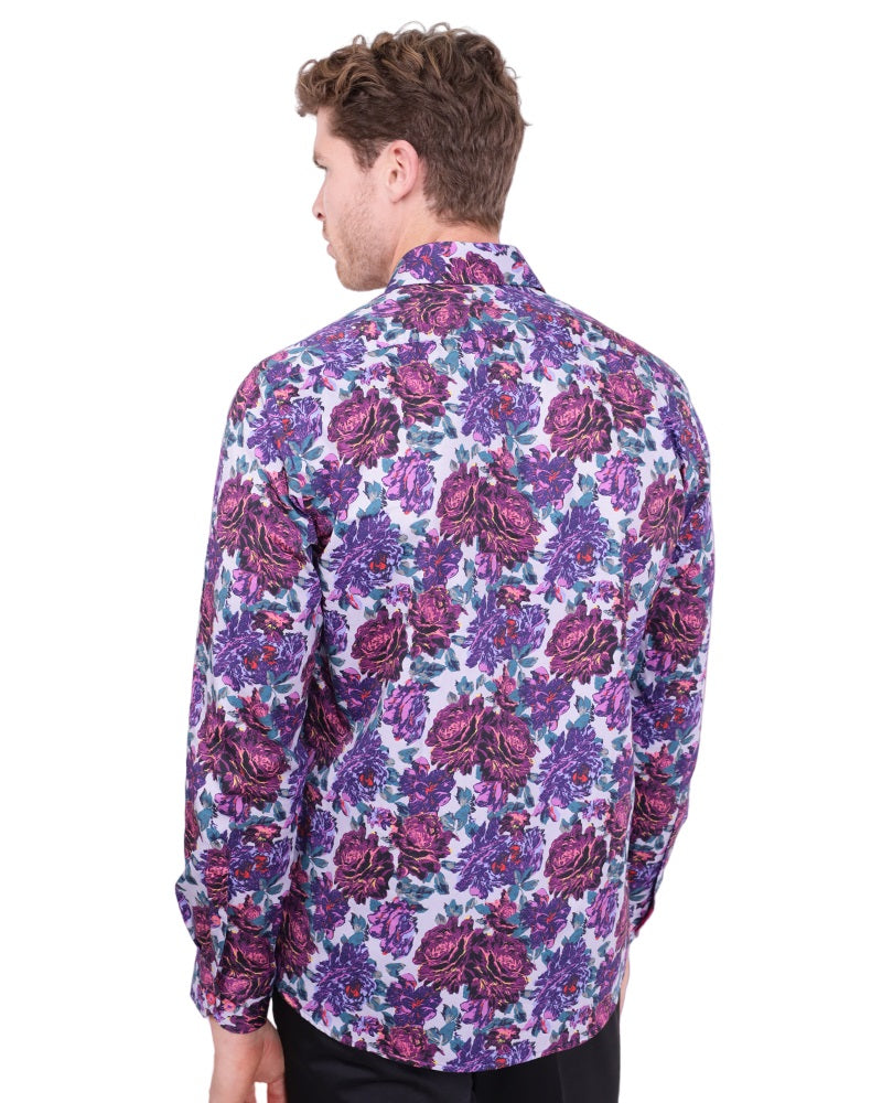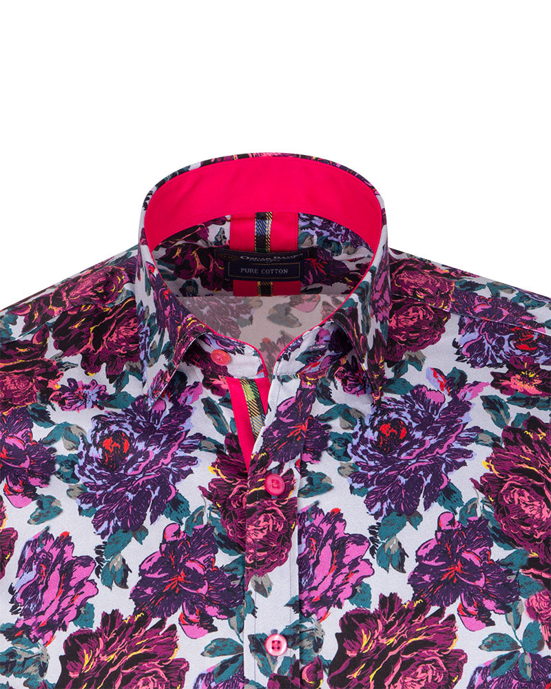 Introducing the Purple Rose Print with Matching Handkerchief, a stylish addition to any wardrobe. This shirt features a beautiful rose print that adds a touch of elegance to your outfit.