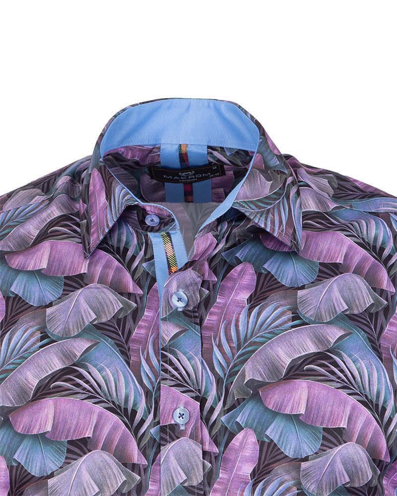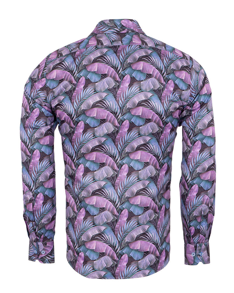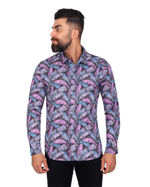 Discover the vibrant Purple Tropical Leaf Print Shirt, perfect for adding a splash of colour to your wardrobe. This stylish shirt features a unique tropical leaf design that captures the essence of summer.