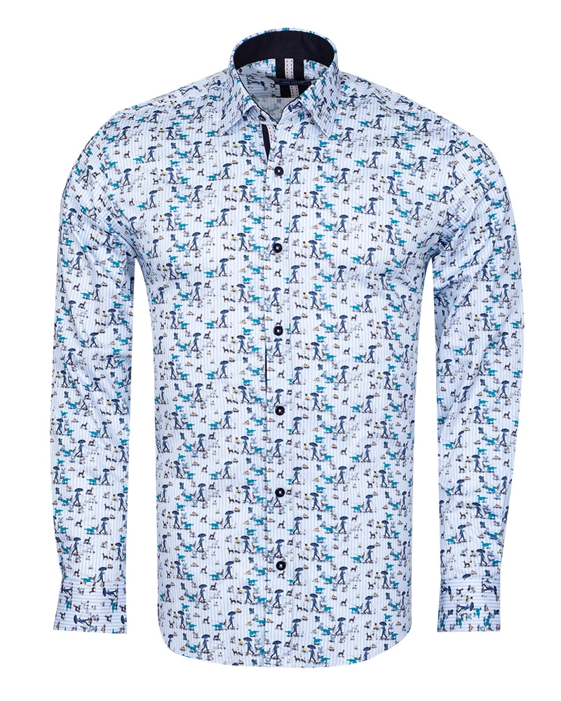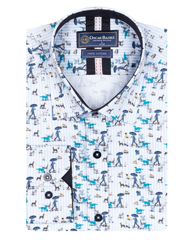 Introducing the Rainy Day Dog Walk Stripe Print with Matching Handkerchief, a stylish addition to your wardrobe. Crafted from 100% satin cotton, this shirt offers both comfort and elegance.