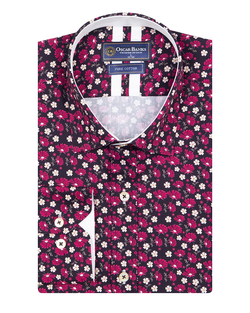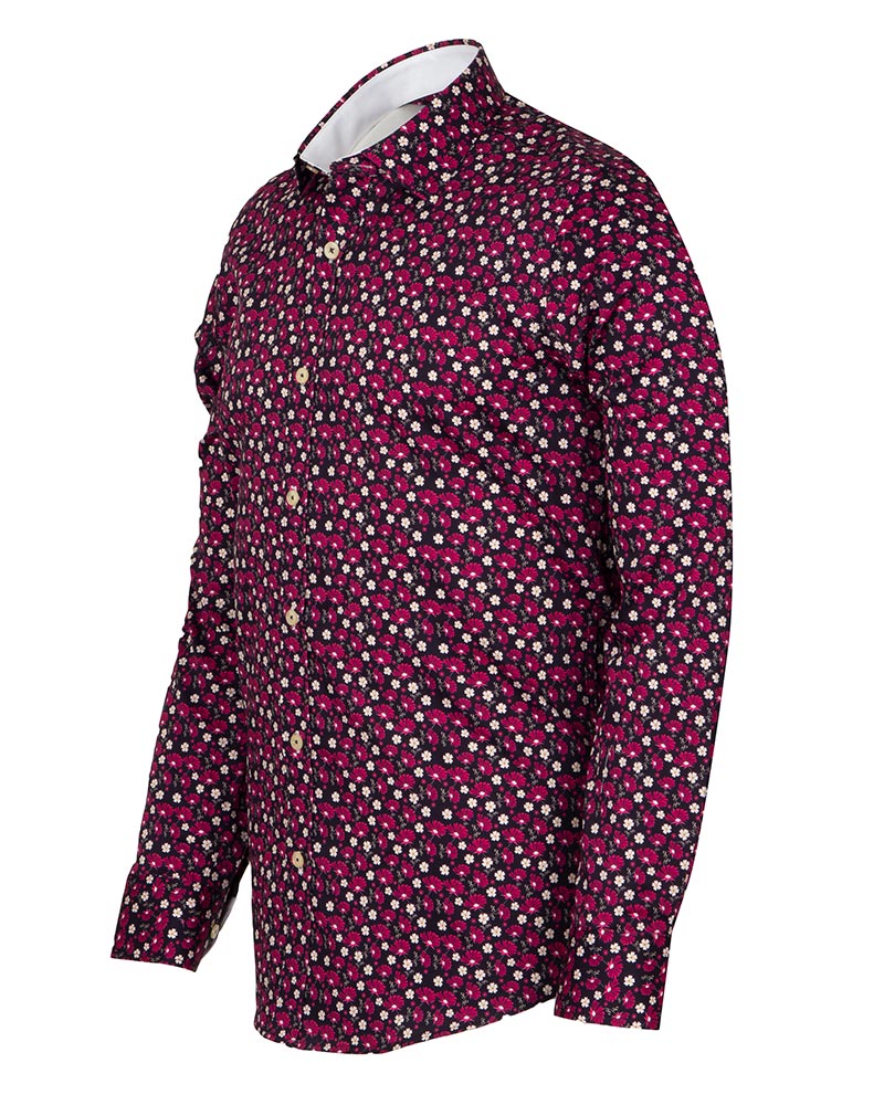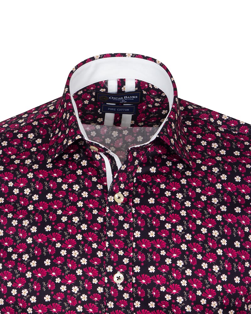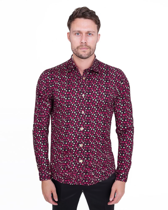 Introducing the Red Floral Print Men's Shirt with Matching Handkerchief, a perfect blend of style and sophistication. Crafted from 100% satin cotton, this shirt offers both comfort and elegance.
