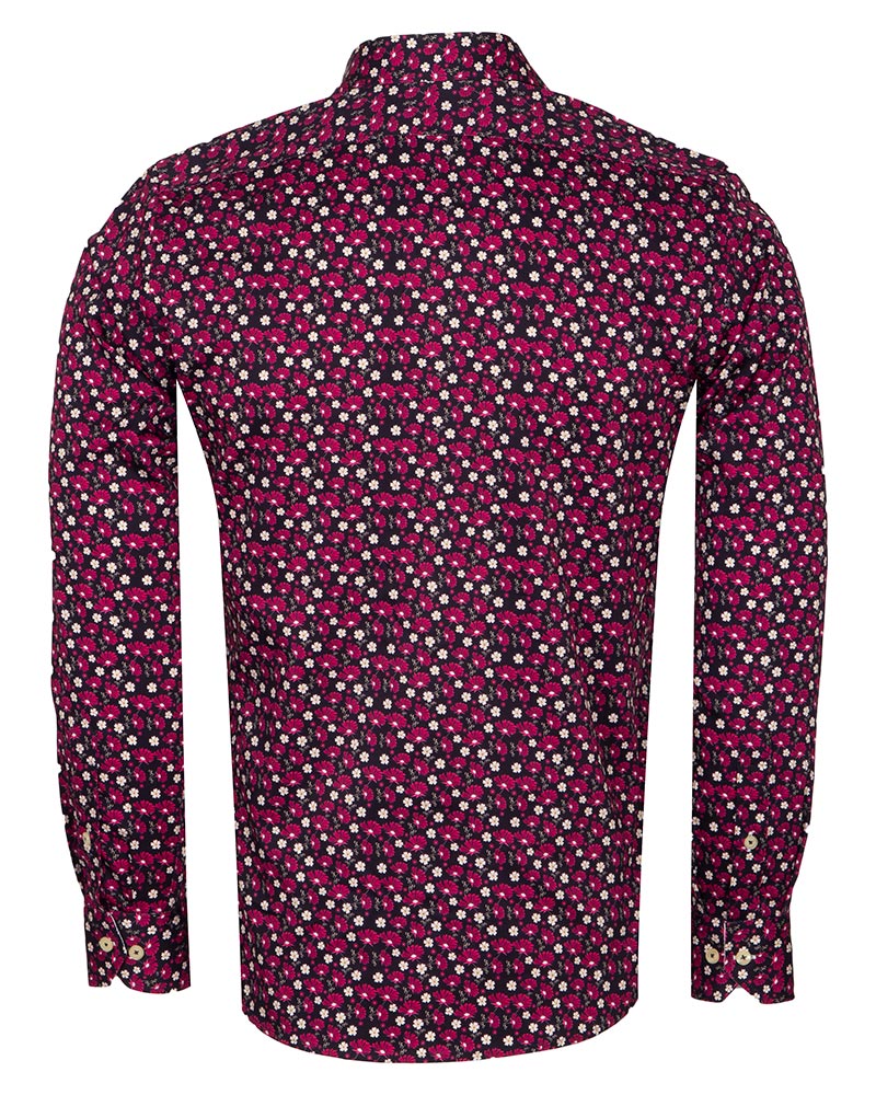 Red Floral Print Men's Shirt with Matching Handkerchief