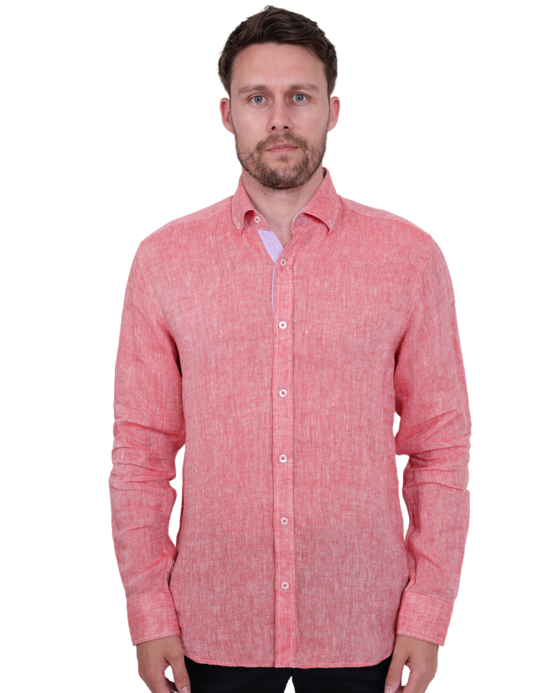 Introducing the Red Linen Long Sleeve Shirt, a perfect blend of style and comfort. Crafted from 100% linen, this shirt offers breathability and a lightweight feel, making it ideal for any occasion.