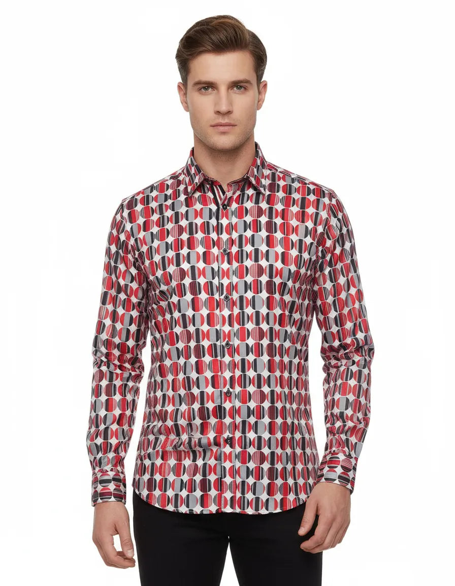 Red Stylish Circle Print Shirt