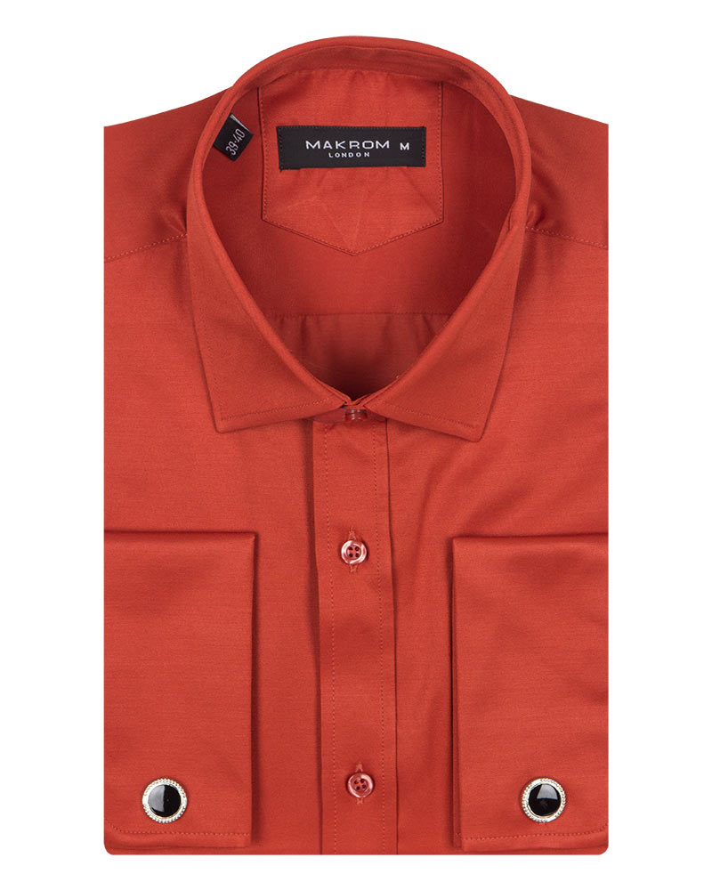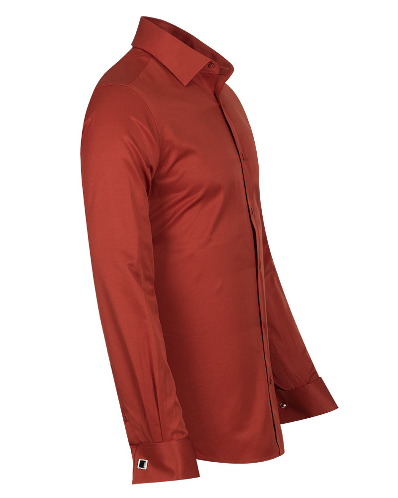 Rustic Brown Plain Double Cuff Shirt