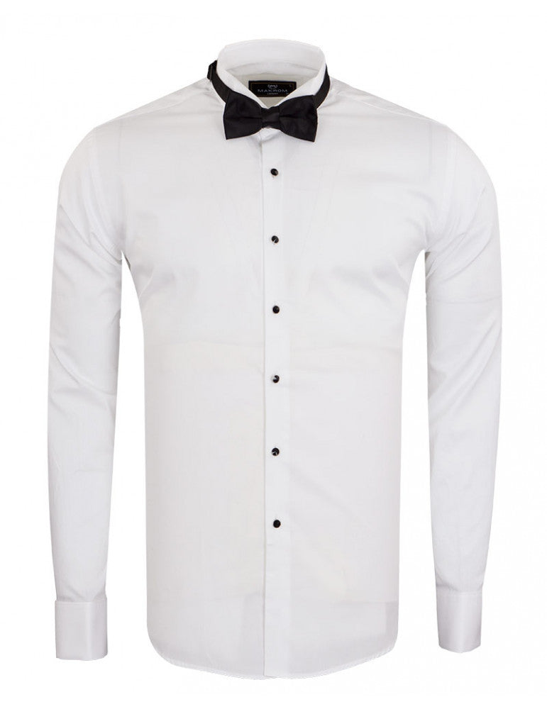 Classic Plain Wing Collar Bow Tie Men's Shirt