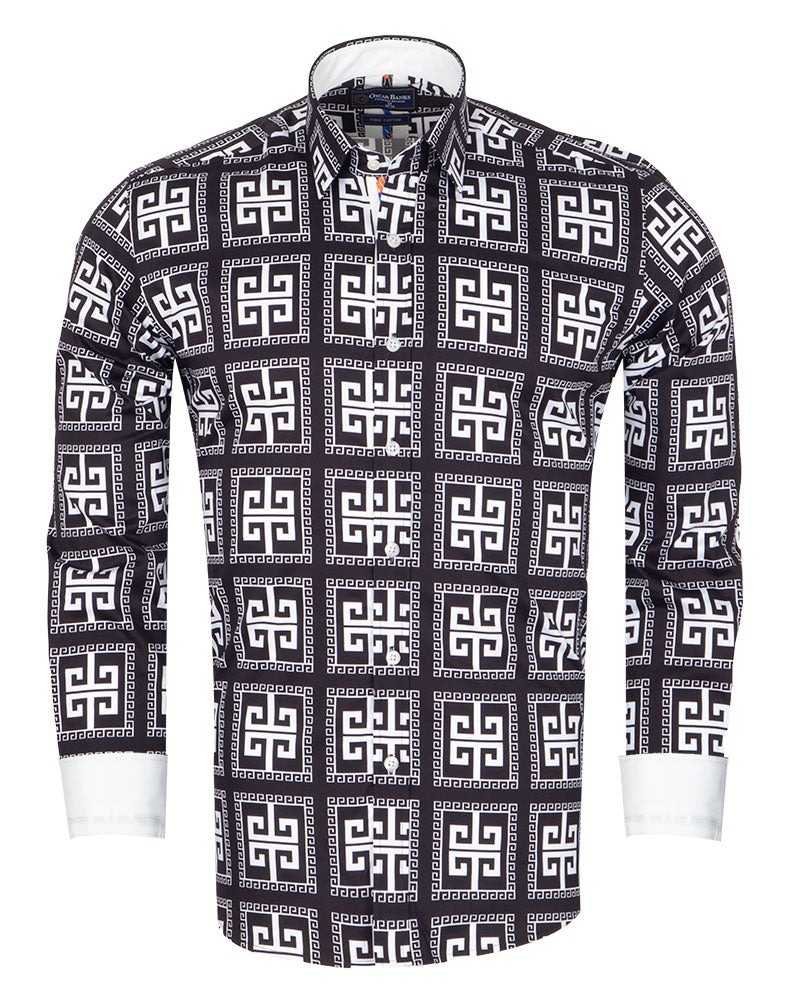 Introducing the Roman Mosaic Print with Matching Handkerchief, a stylish addition to your wardrobe. This exquisite shirt features a unique mosaic print that captures the essence of classic design.