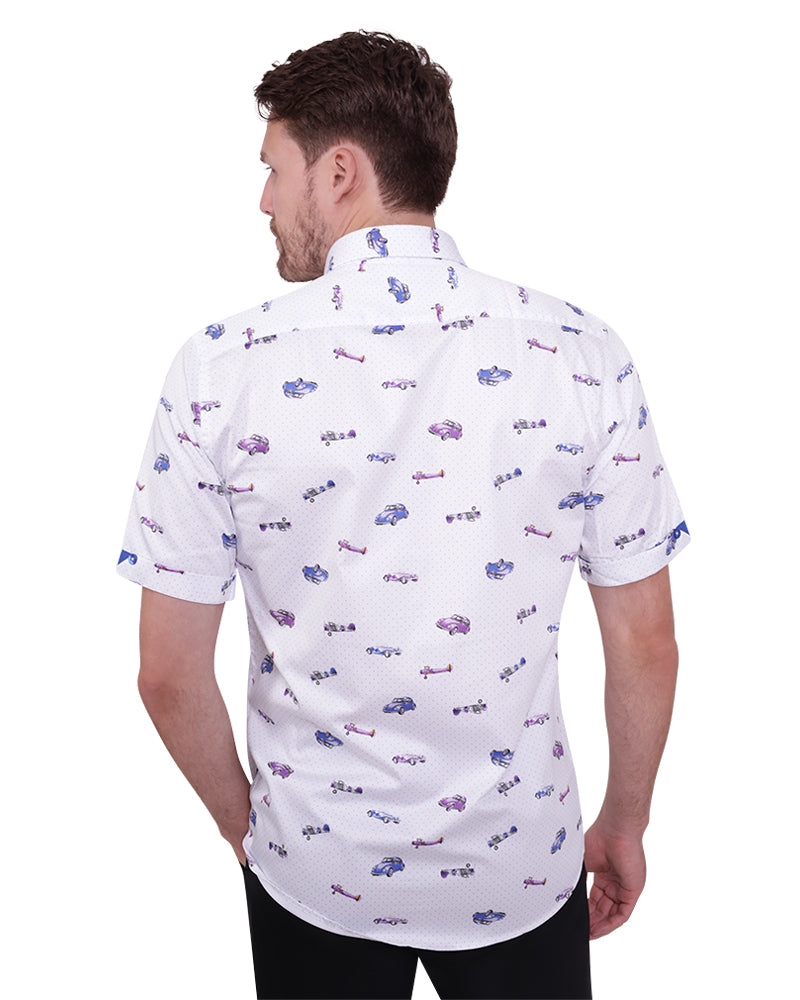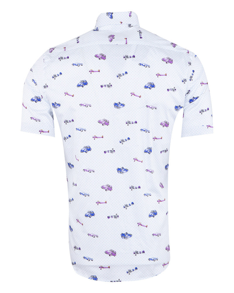 Vintage Car and Airplane Print Short Sleeve Shirt
