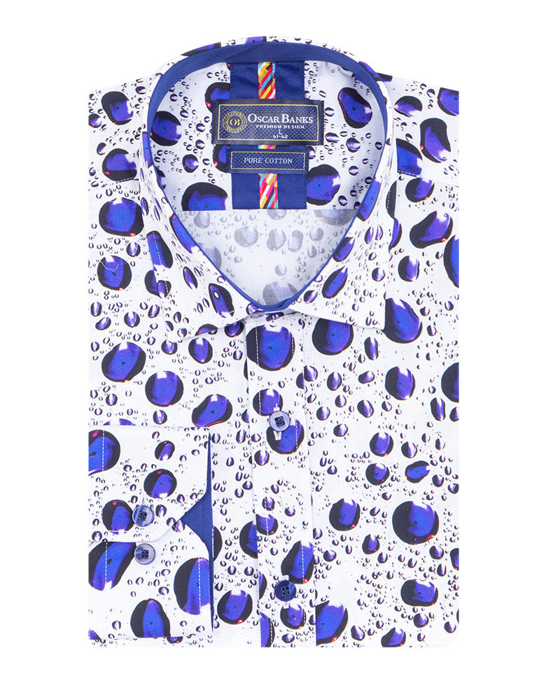 Elevate your wardrobe with the White Water Drop Print Shirt, designed for the modern man. Crafted from 100% satin cotton, this shirt offers a luxurious feel and exceptional comfort.