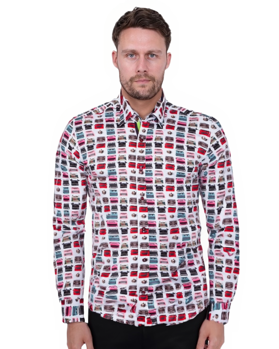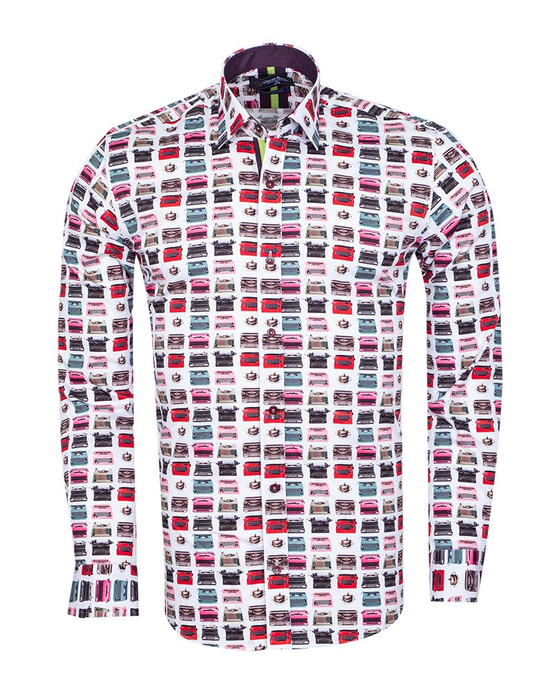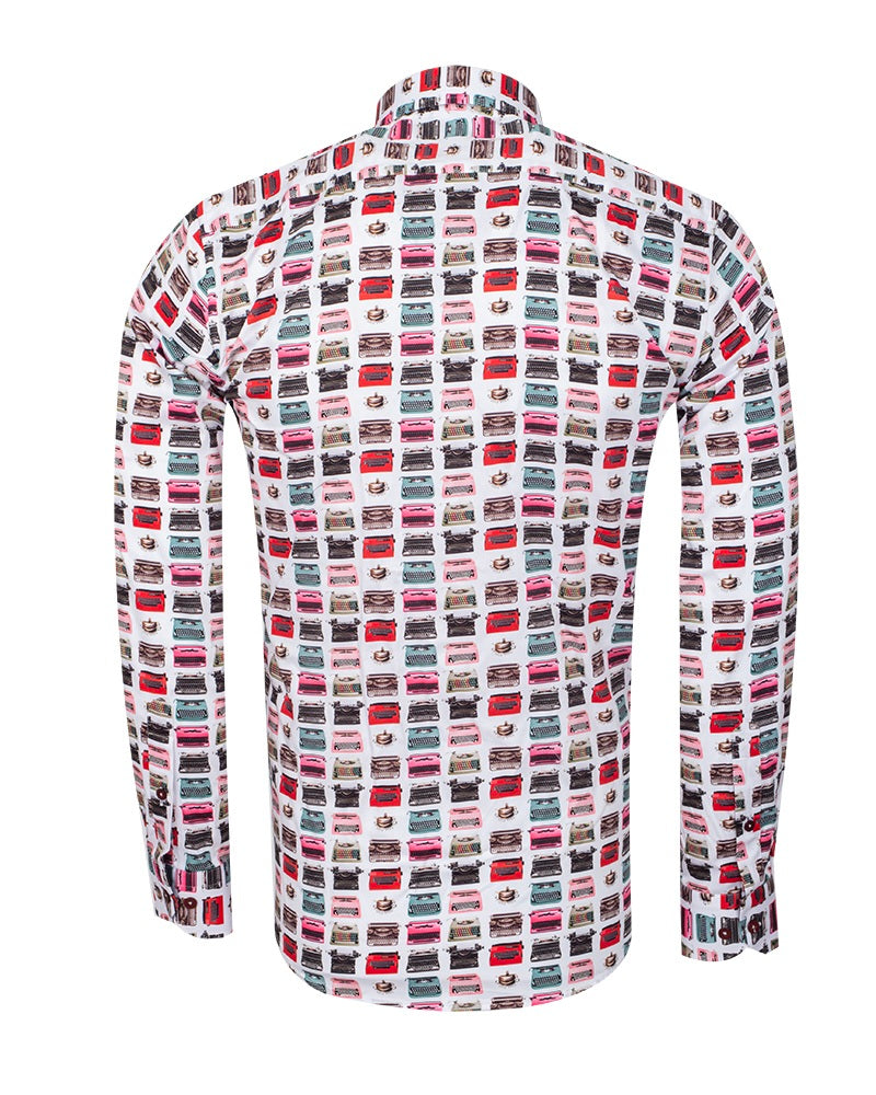 Retro Typewriter Shirt Satin Cotton Shirt with Matching Handkerchief