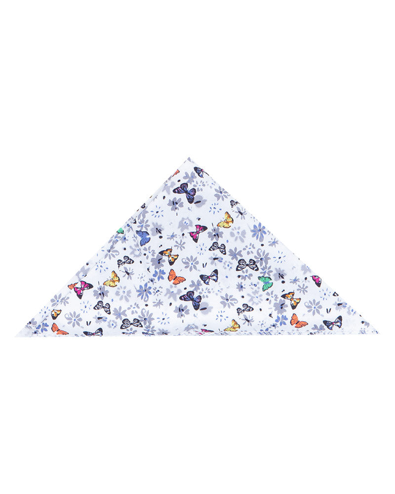 White Butterfly Print Shirt with Matching Handkerchief