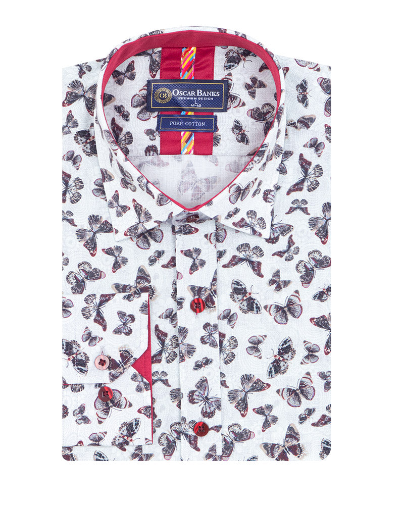 The shirt features a contrasting collar and cuff, adding a touch of sophistication to its playful butterfly print. With single cuffs and two-button adjustable cuffs, it ensures a perfect fit for any occasion.