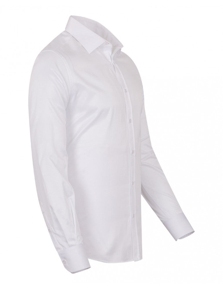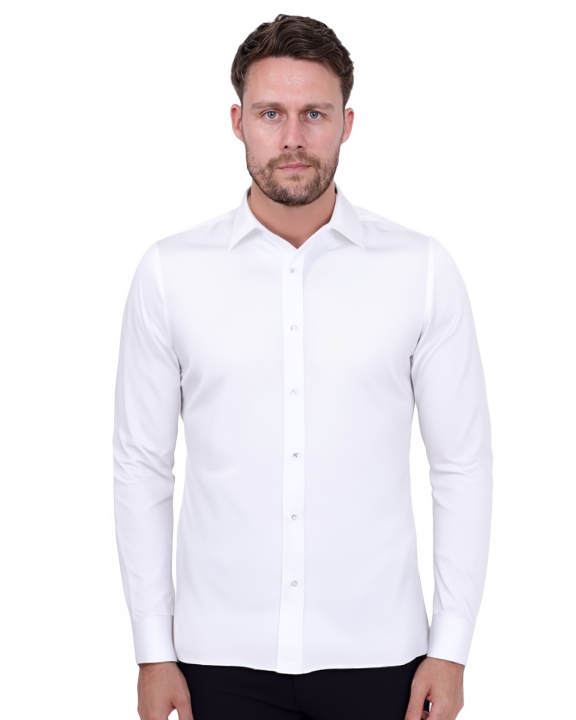 Introducing the White Classic Single Cuff Men's Shirt, a timeless addition to any wardrobe. This shirt features a tapered fit, ensuring a sleek silhouette that flatters all body types. Please refer to the size chart for the perfect fit.