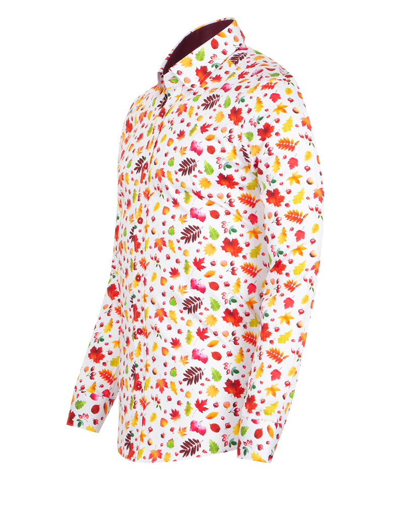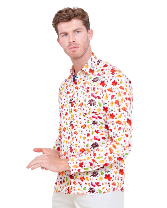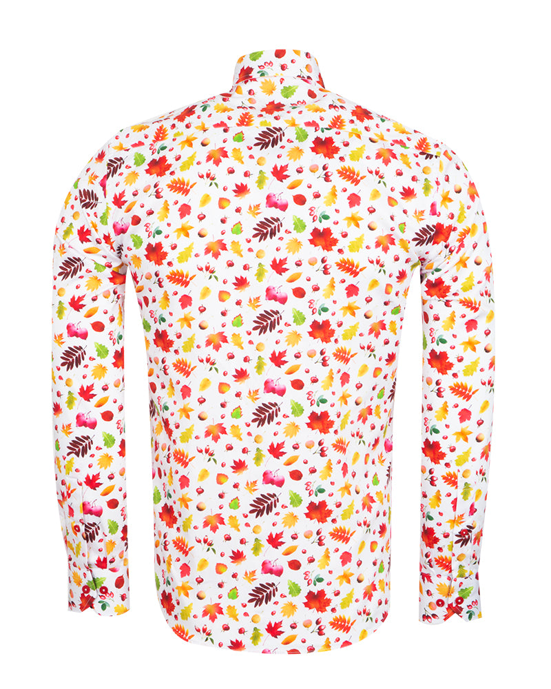 White Colorful Leaf Print Shirt with Matching Handkerchief