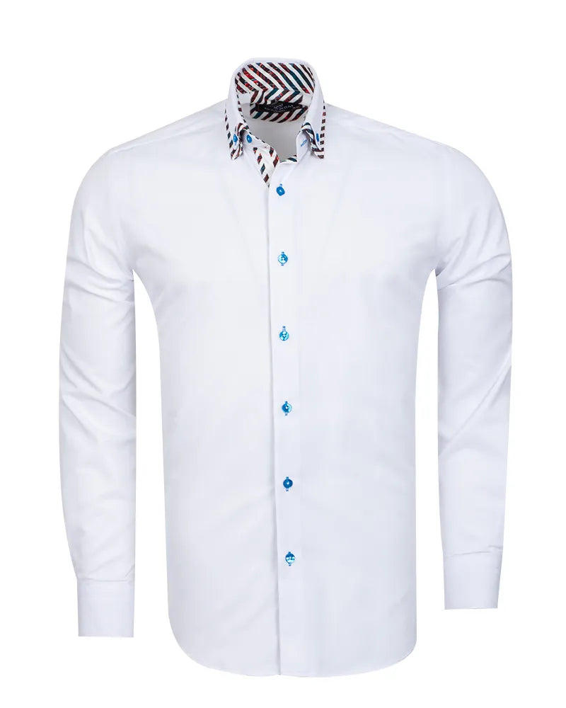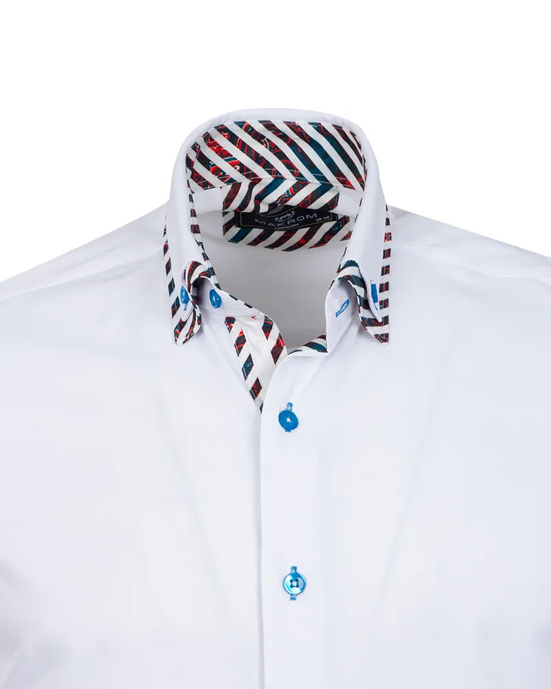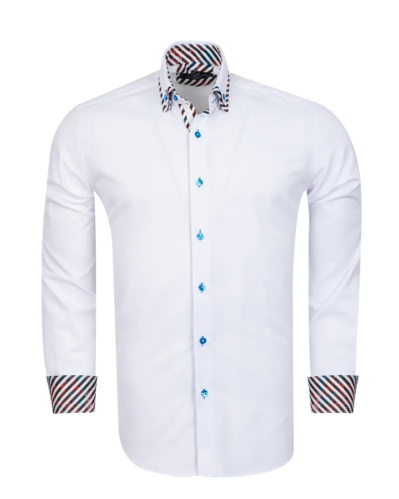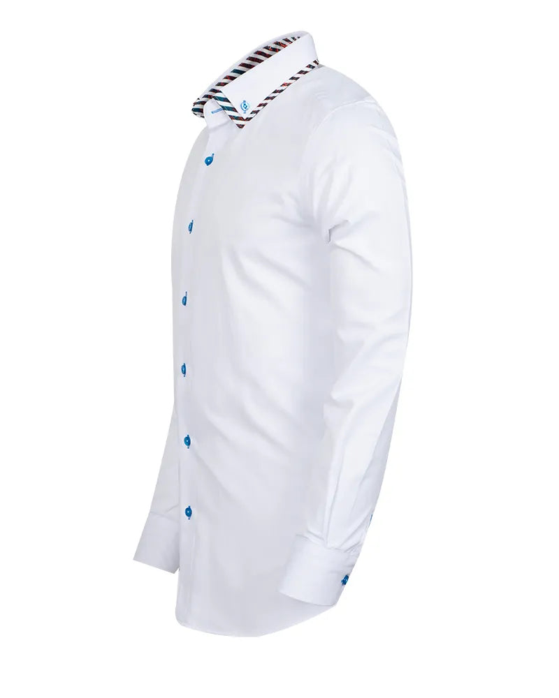 White Plain Contrast Stripe Collar and Cuffs Long Sleeve Shirt