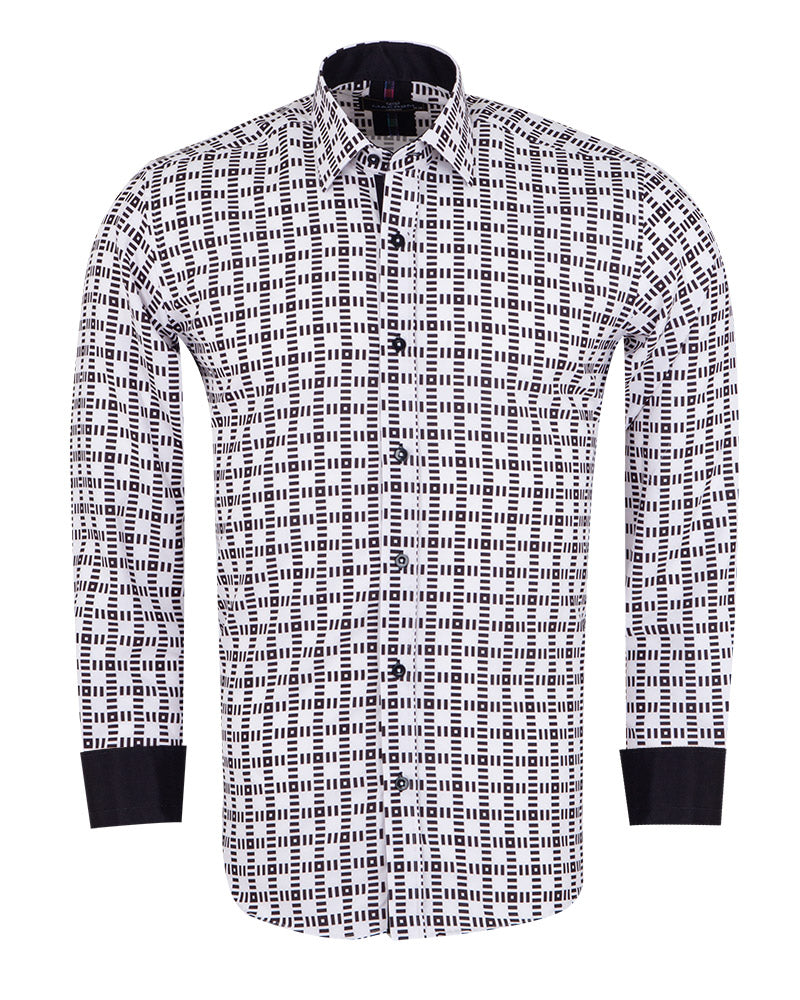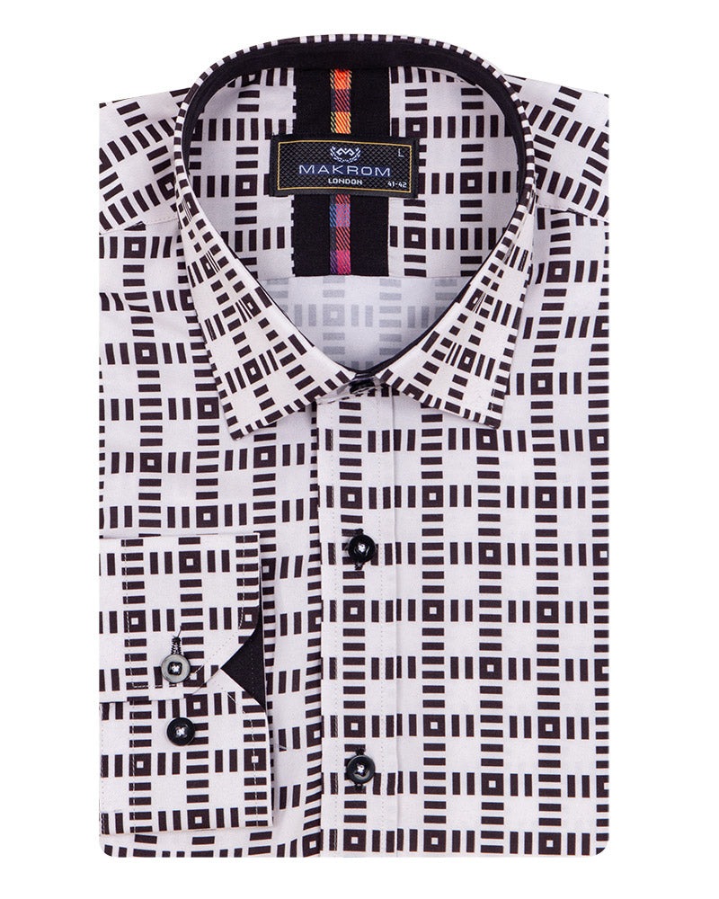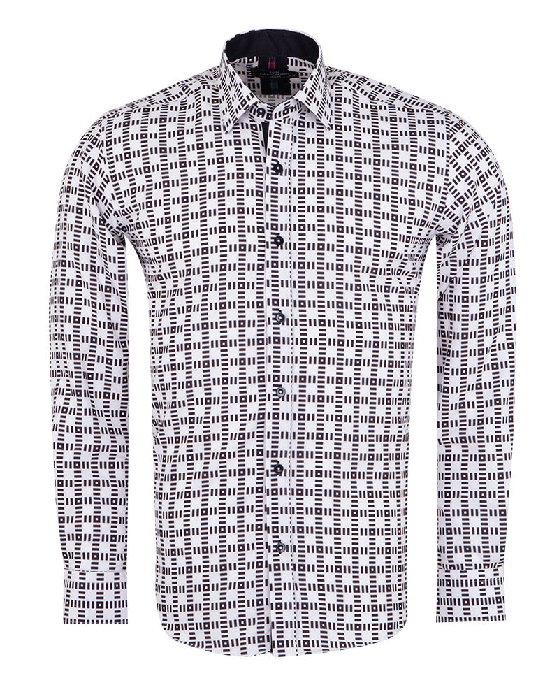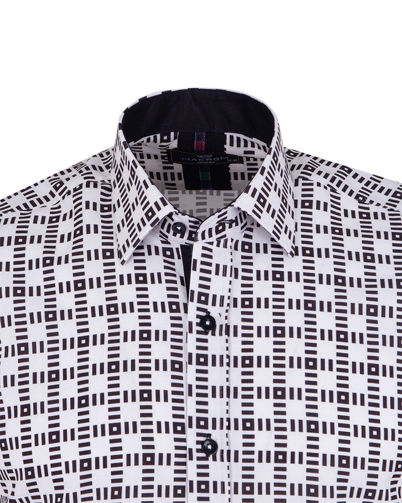White Dashed Line Check Print Shirt
