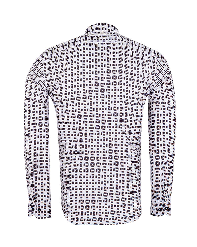 Introducing the White Dashed Line Check Print Shirt, a stylish addition to your wardrobe. This shirt features a unique dashed line check print that adds a modern twist to a classic design.