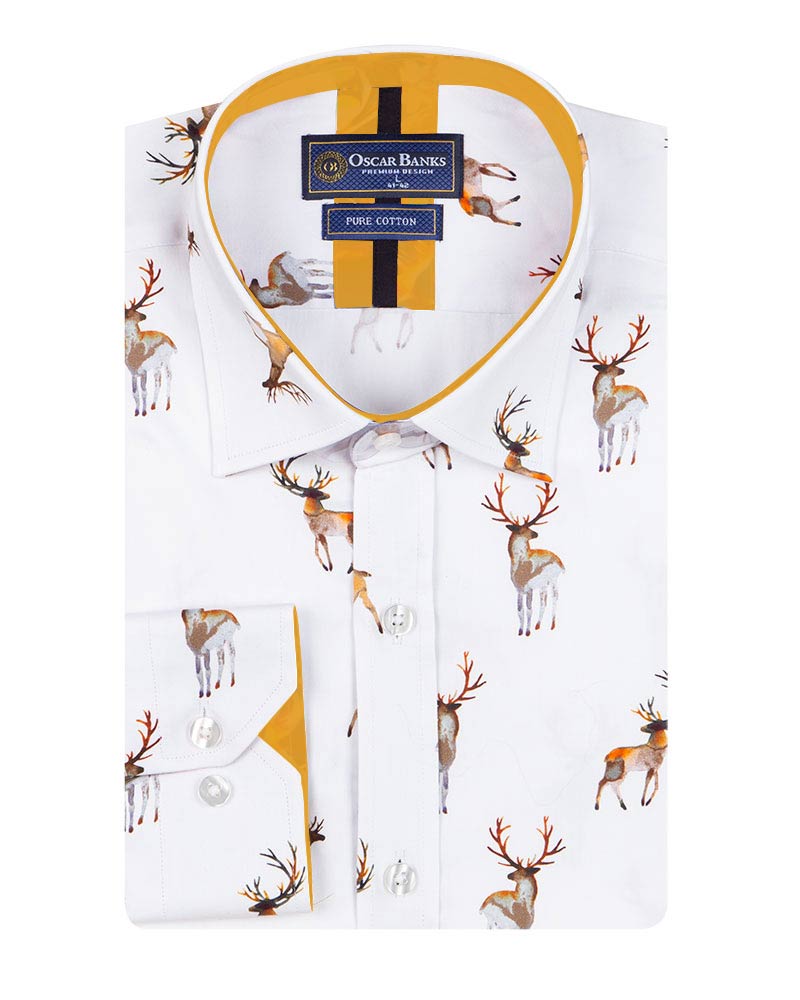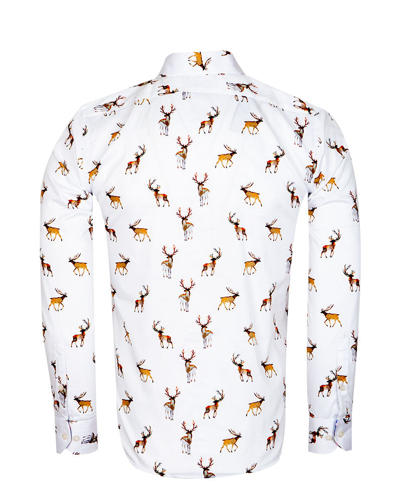 White Deer Print Men's Christmas Shirt with Matching Handkerchief