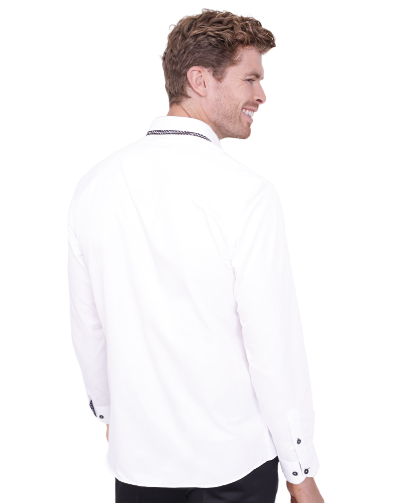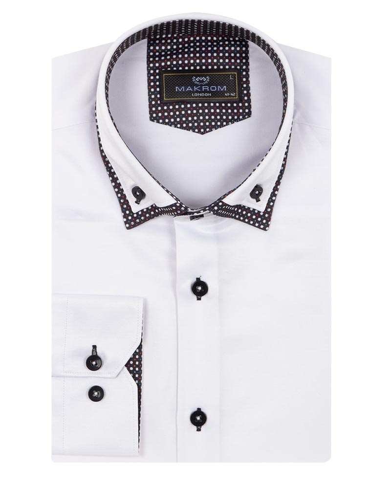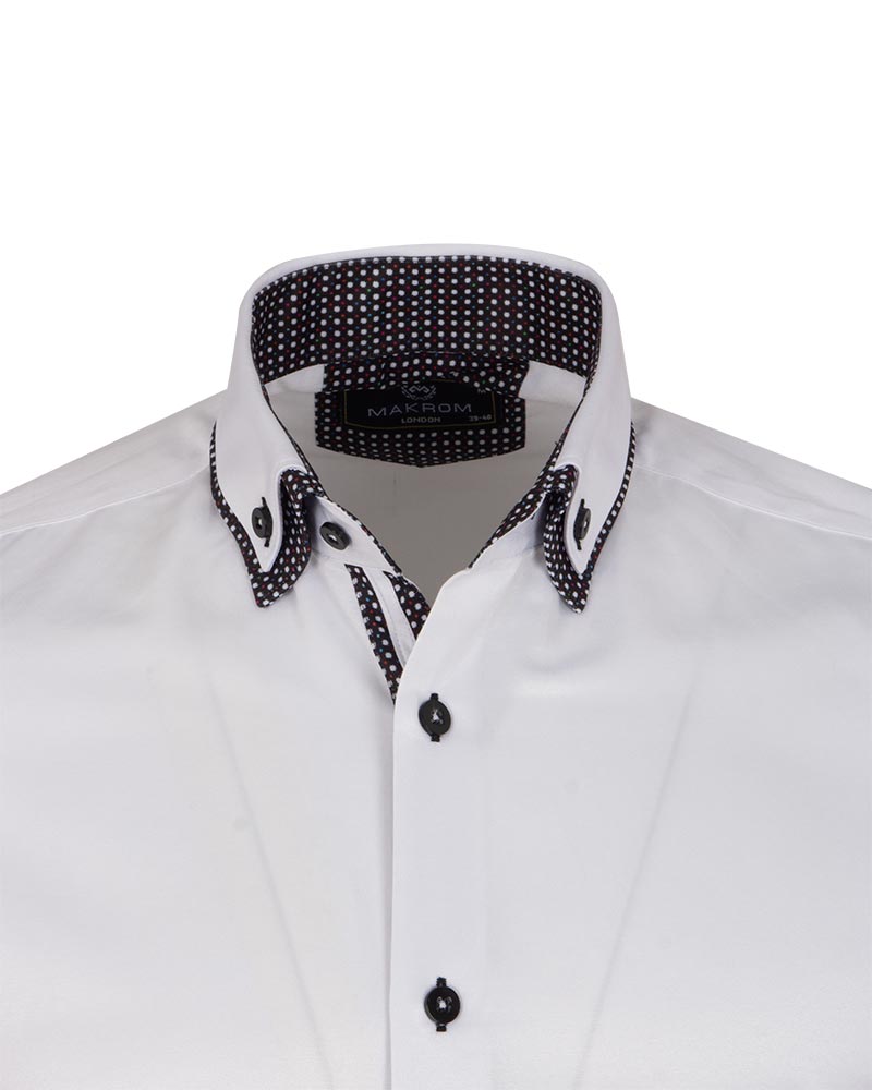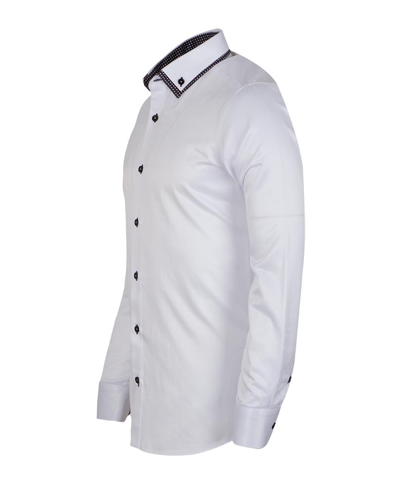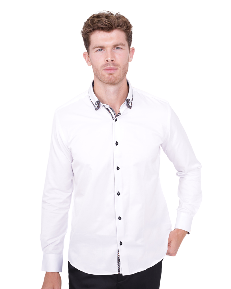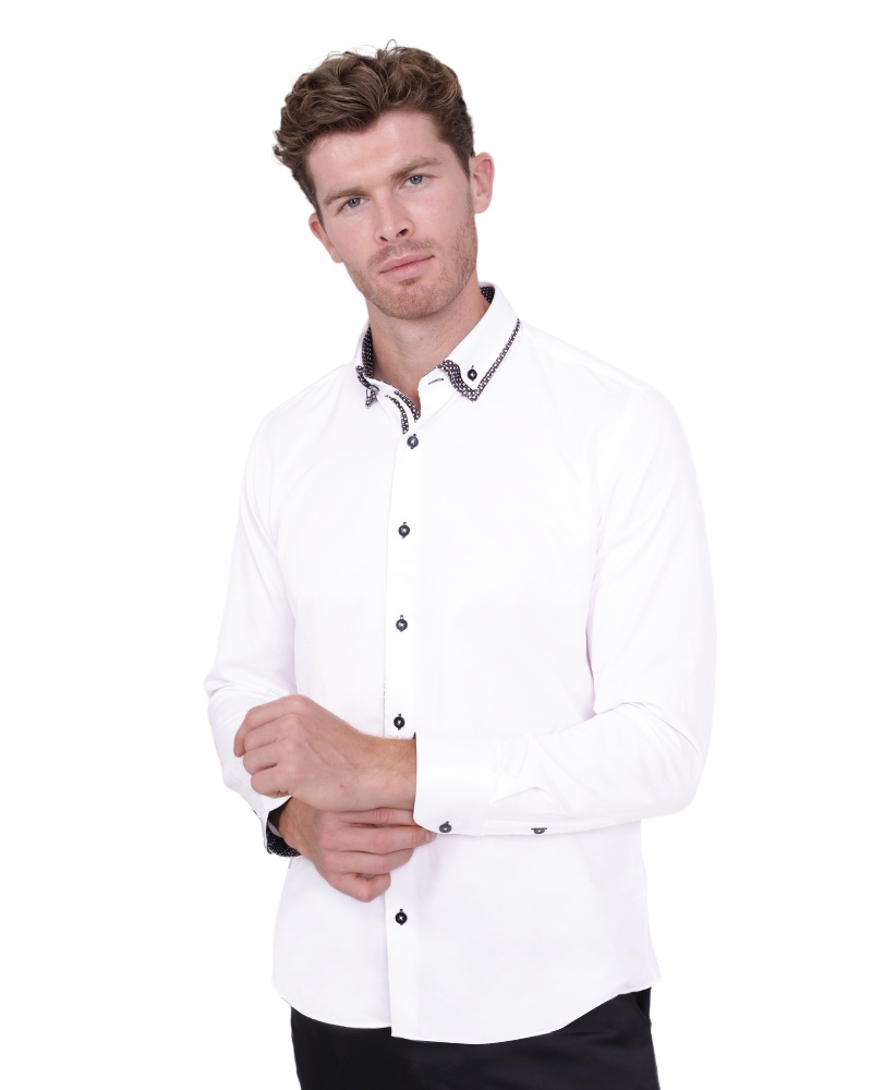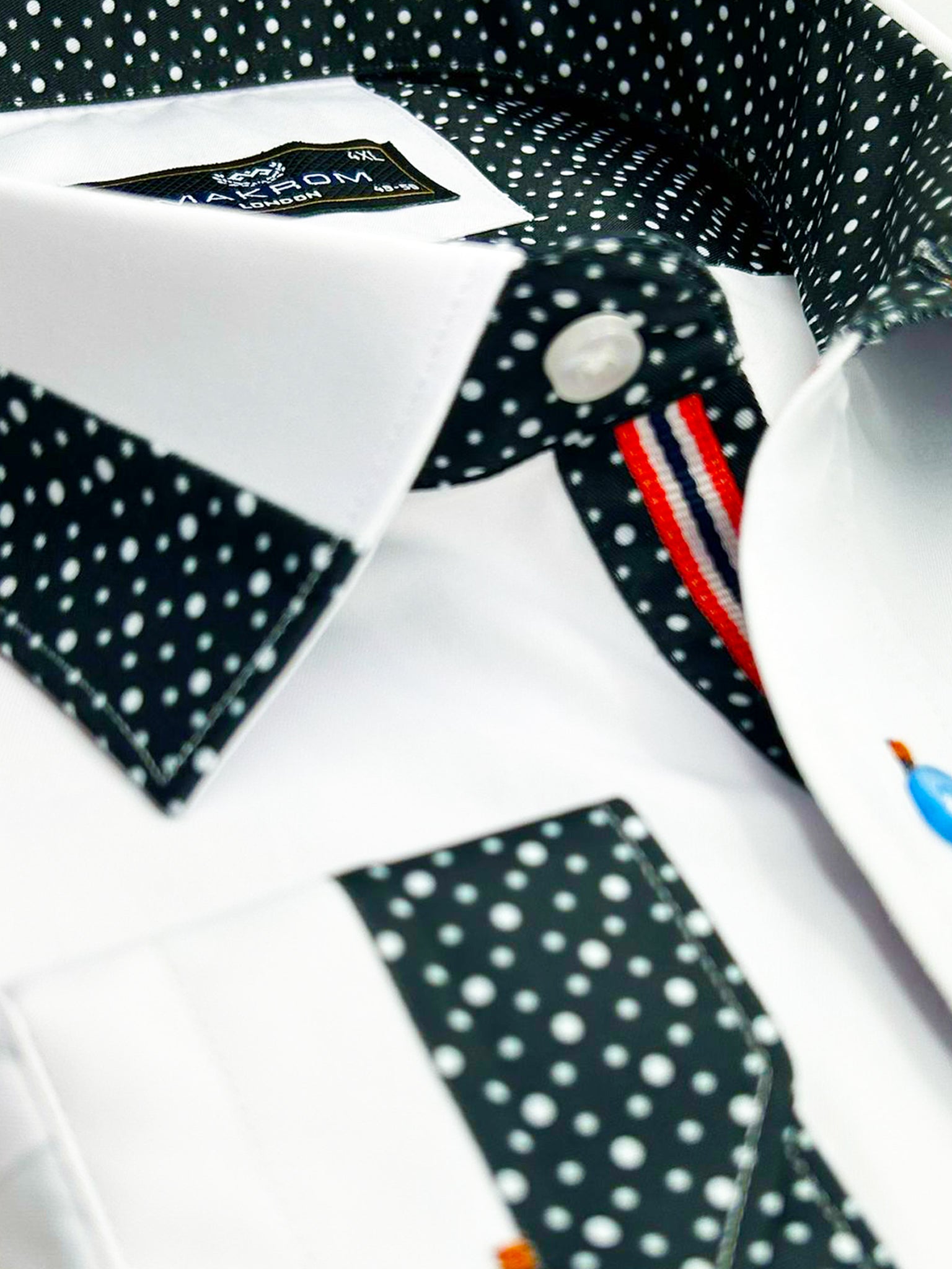 Discover the elegance of the White Double Collar Dotted Print Shirt, a perfect blend of style and comfort. This shirt features a unique dotted print that adds a touch of sophistication to any outfit.