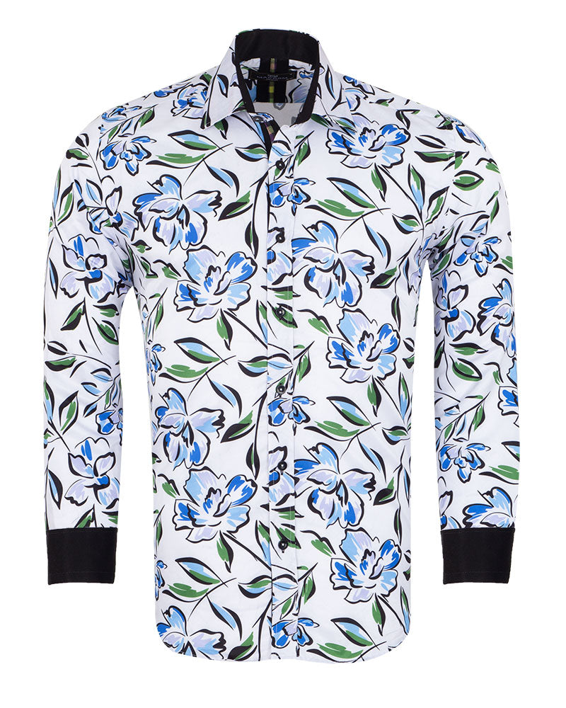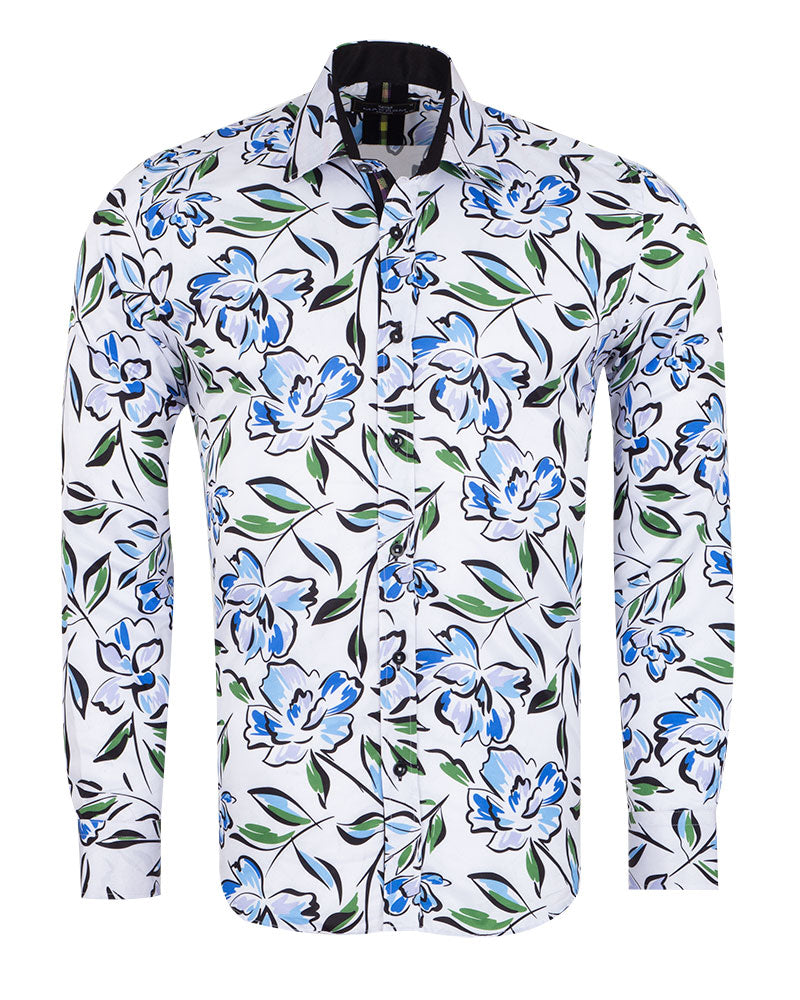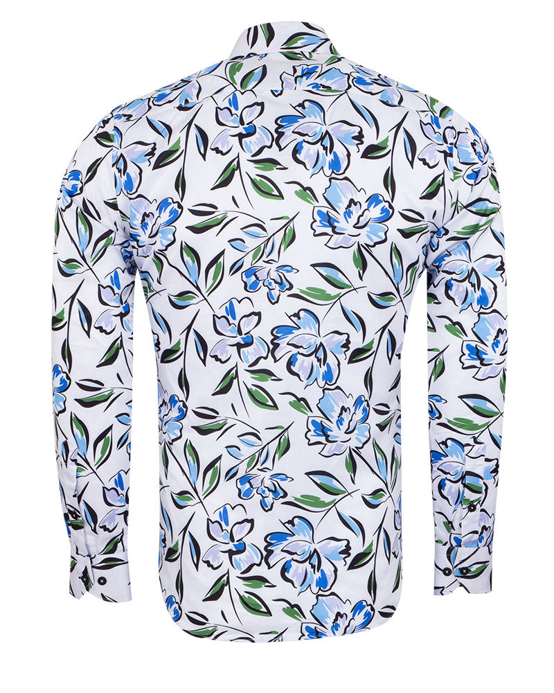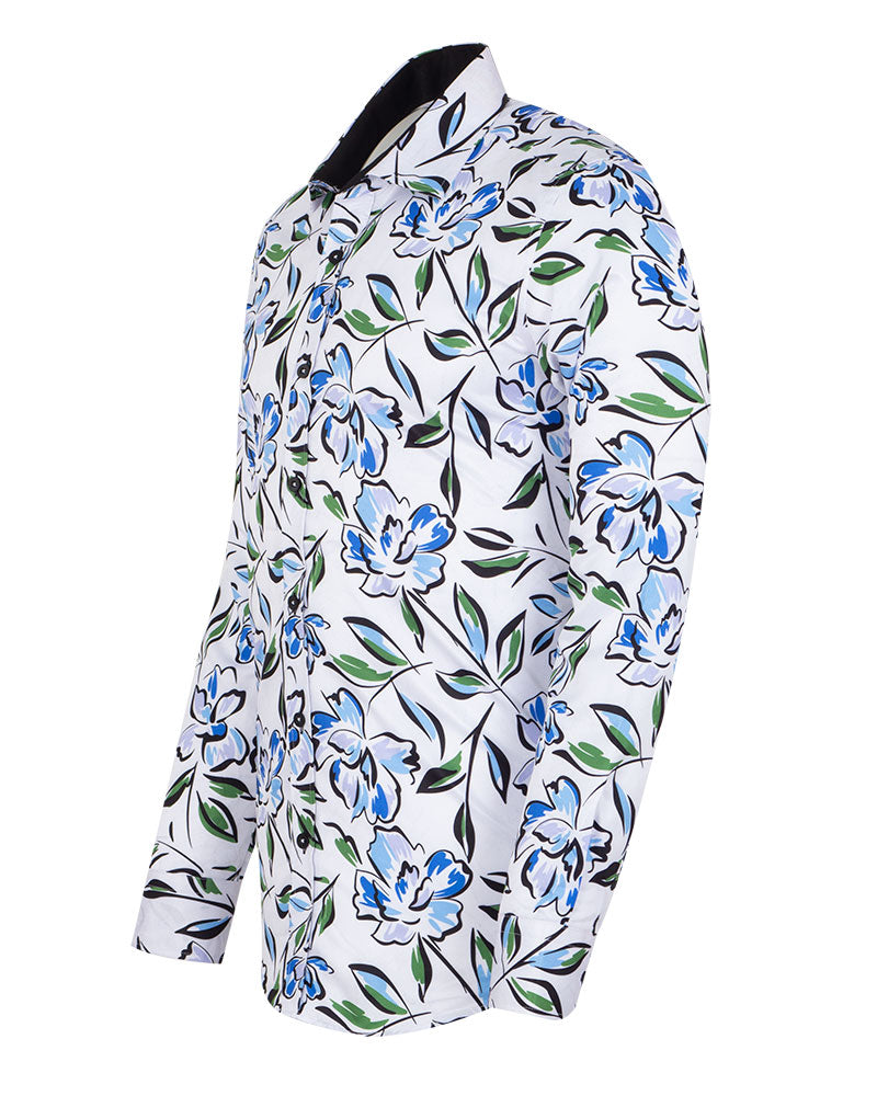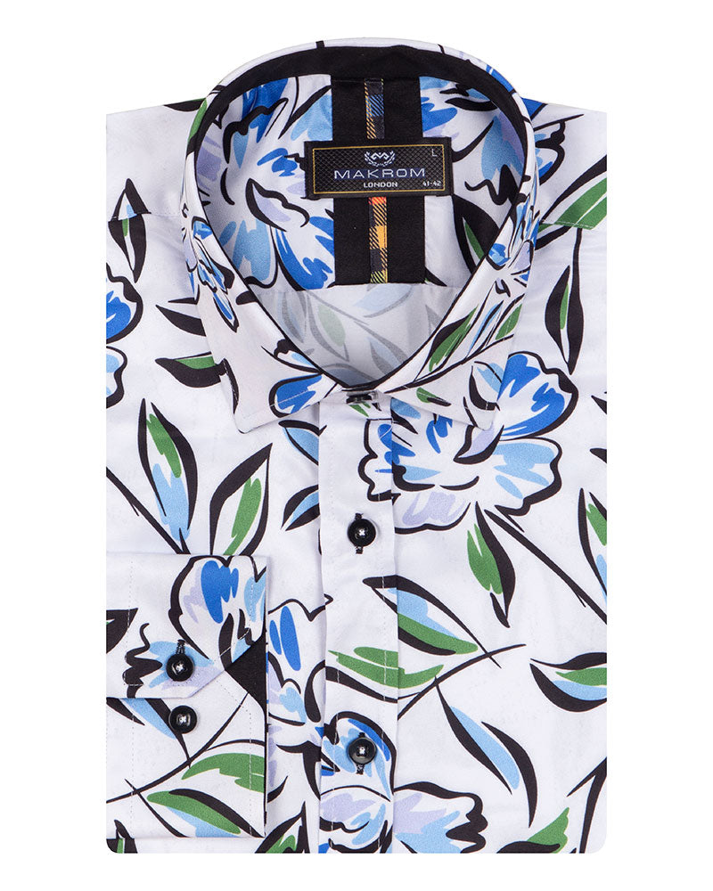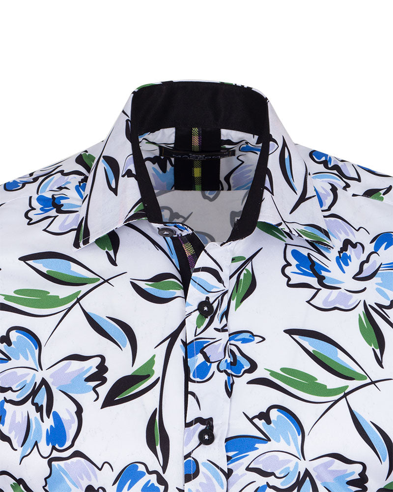 White Flower Sketch Print Shirt