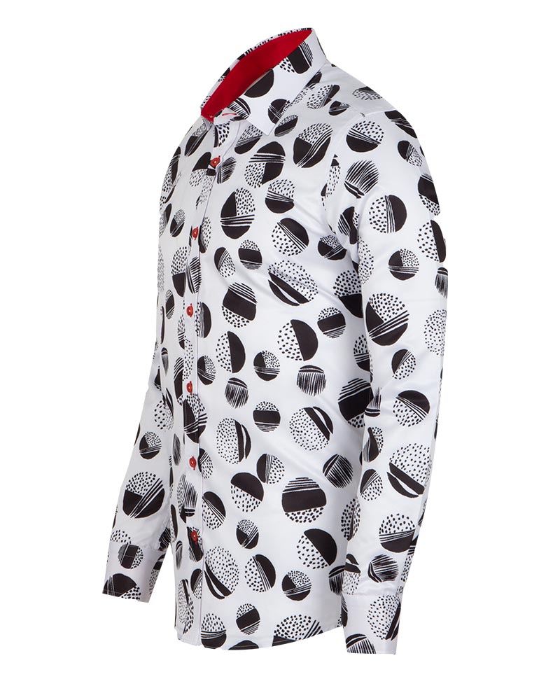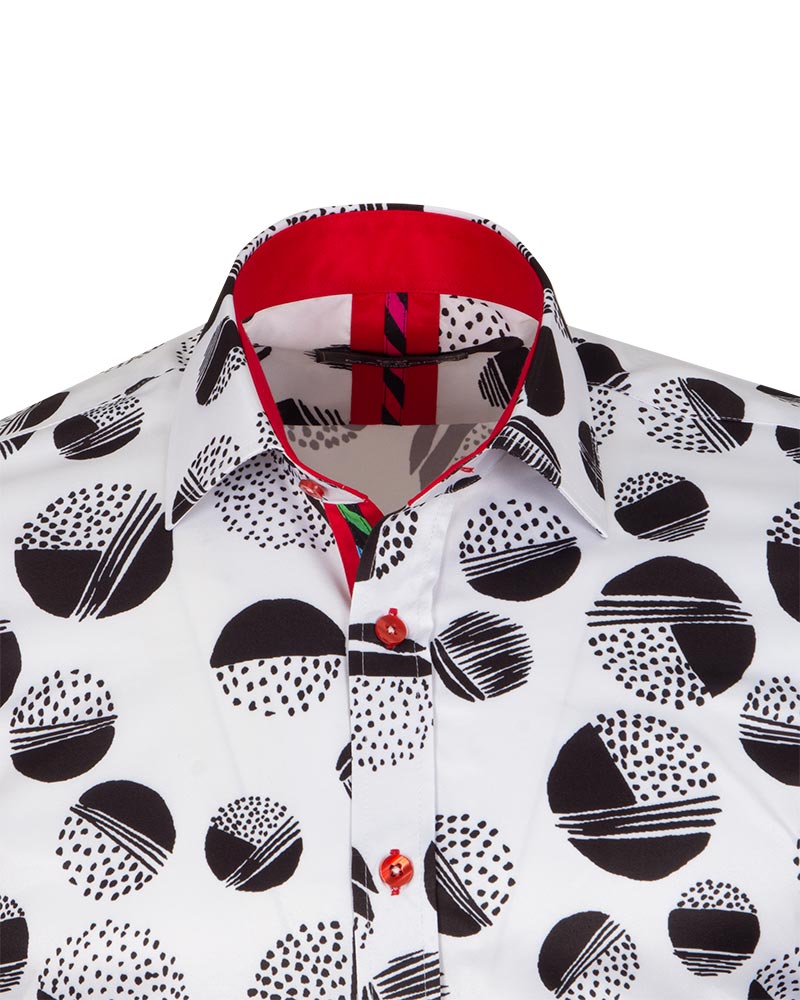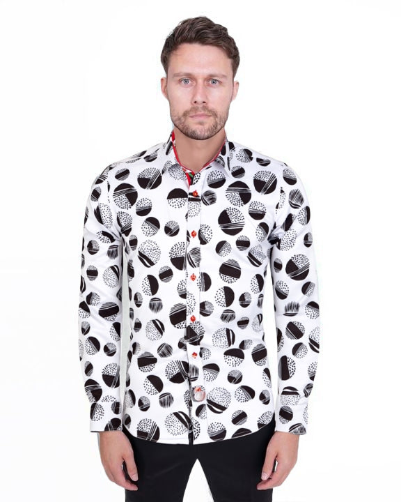 Discover the stylish White Dotted Moon Print Men's Shirt, perfect for any occasion. This shirt features a unique moon print design that adds a touch of sophistication to your wardrobe.