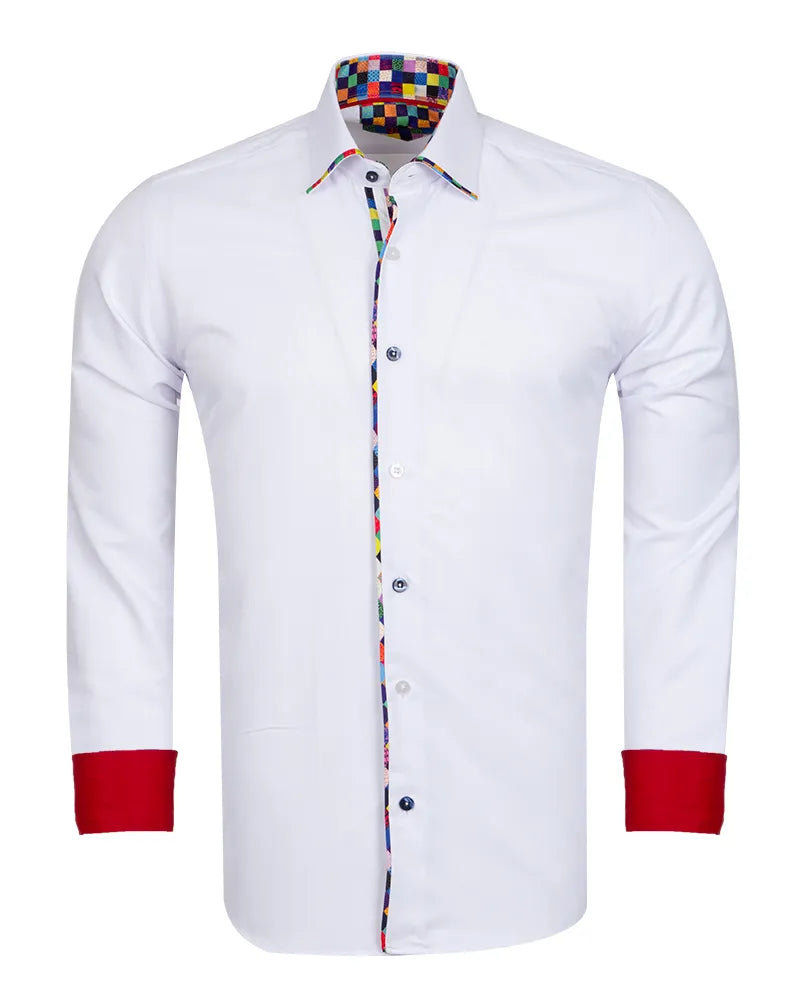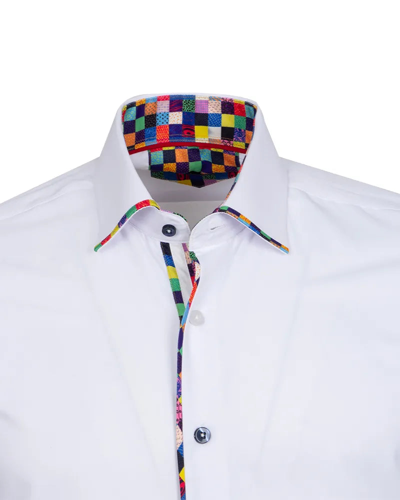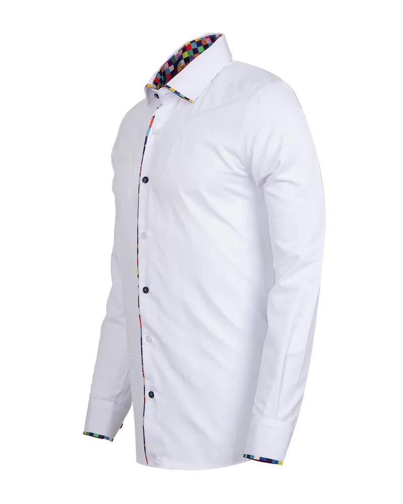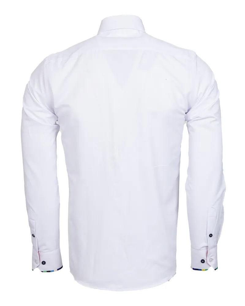 Introducing the White Fashion Shirt with Multicolour Collar Tip Design, a perfect blend of style and comfort. This shirt features a contrasting front panel, collar, and cuff tip design that adds a unique flair to your wardrobe.