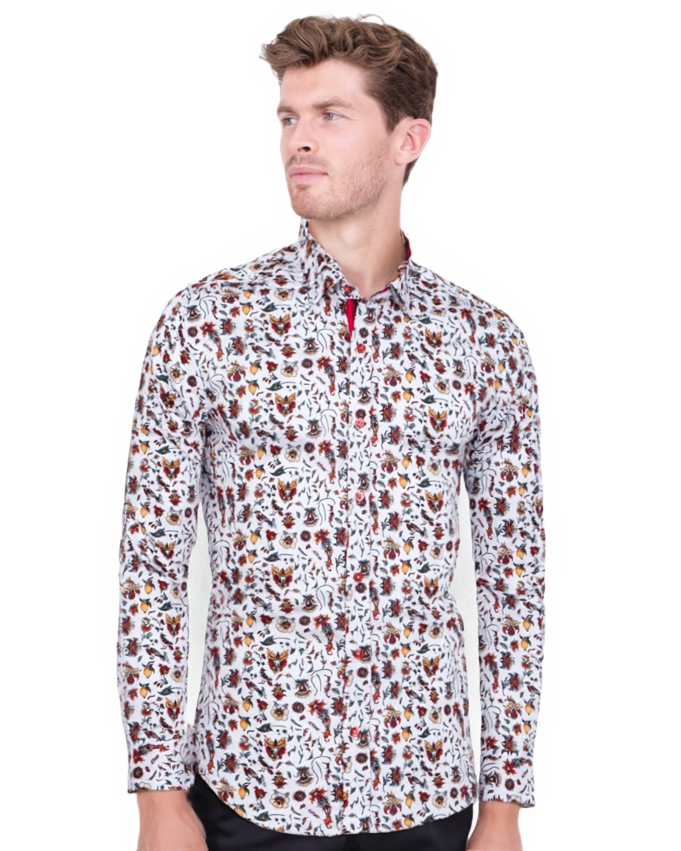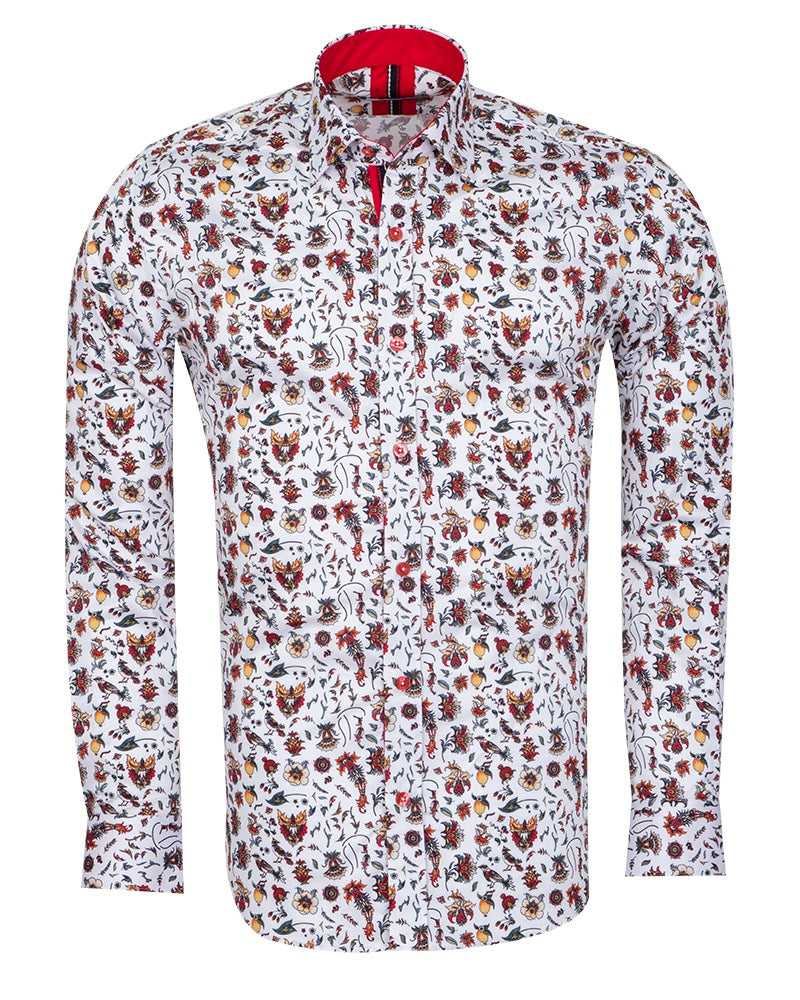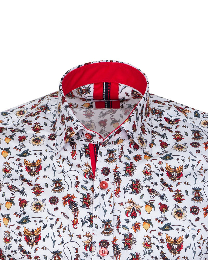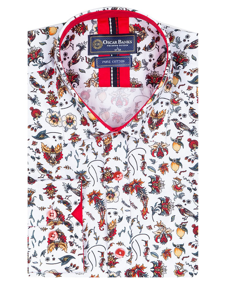 Introducing the White Floral Print with Matching Handkerchief, a stunning addition to any wardrobe. Crafted from 100% satin cotton, this shirt offers a luxurious feel while ensuring comfort throughout the day.