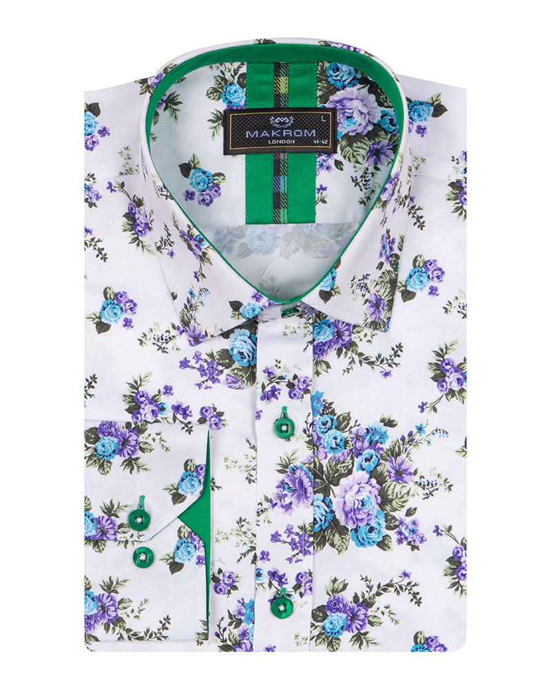 White Floral Print Shirt