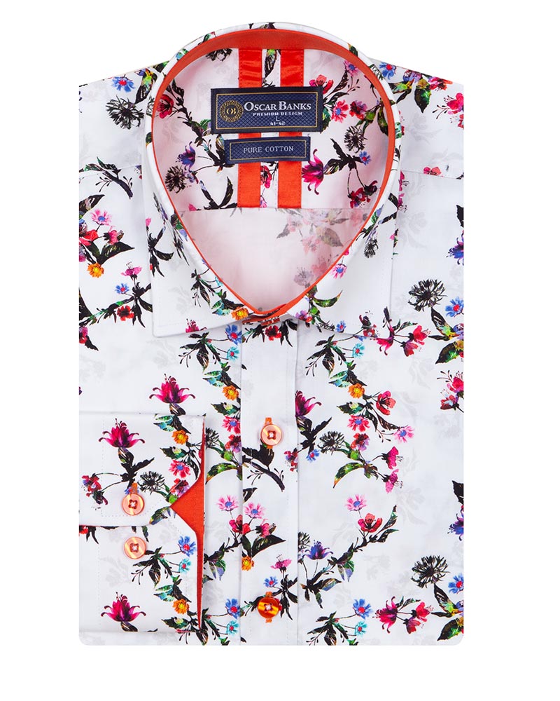 Introducing the White Flowers Print Shirt with Matching Handkerchief, a perfect blend of style and sophistication. Crafted from 100% satin cotton, this shirt offers a luxurious feel and exceptional comfort.