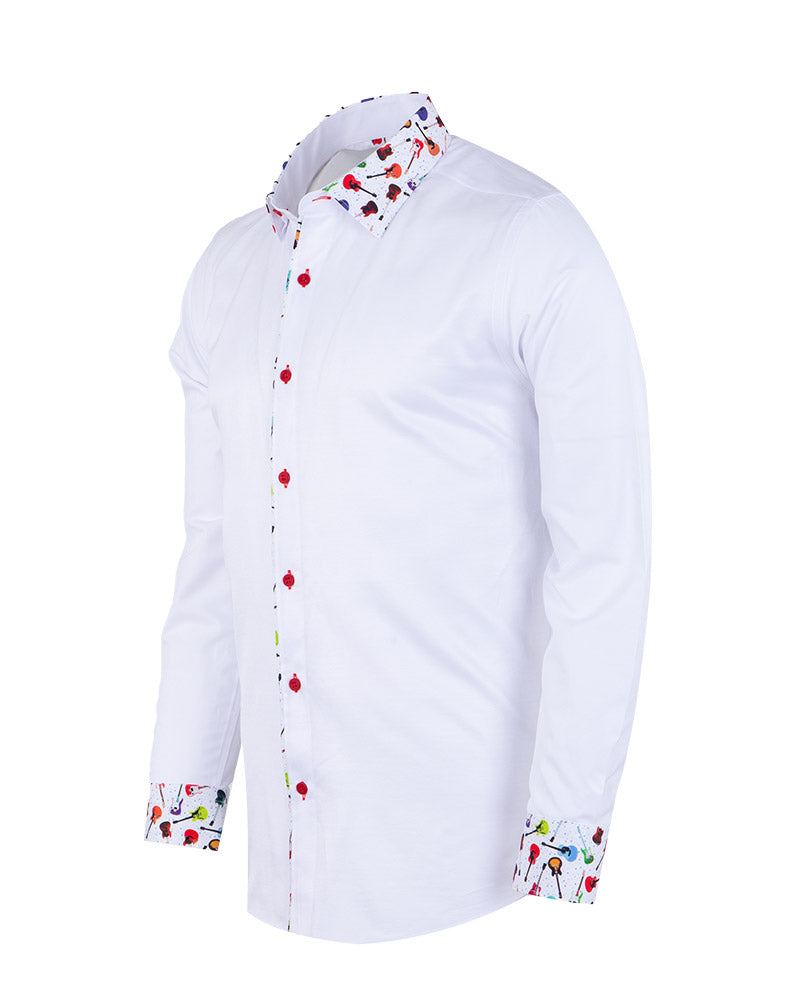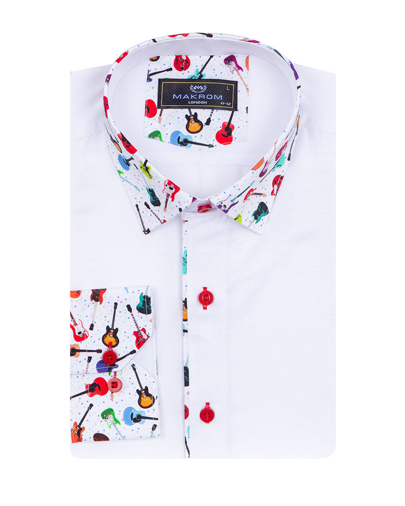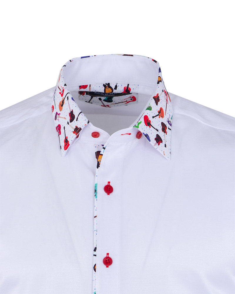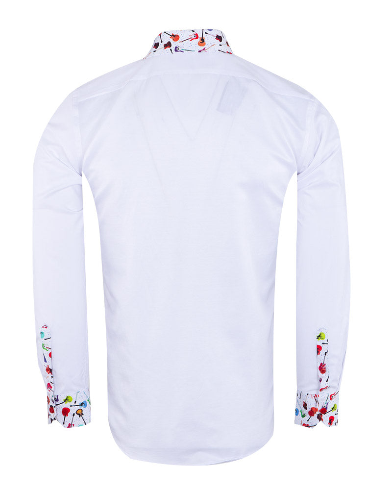 White Guitar Colourful Print on Collar & Cuff Men's Shirt