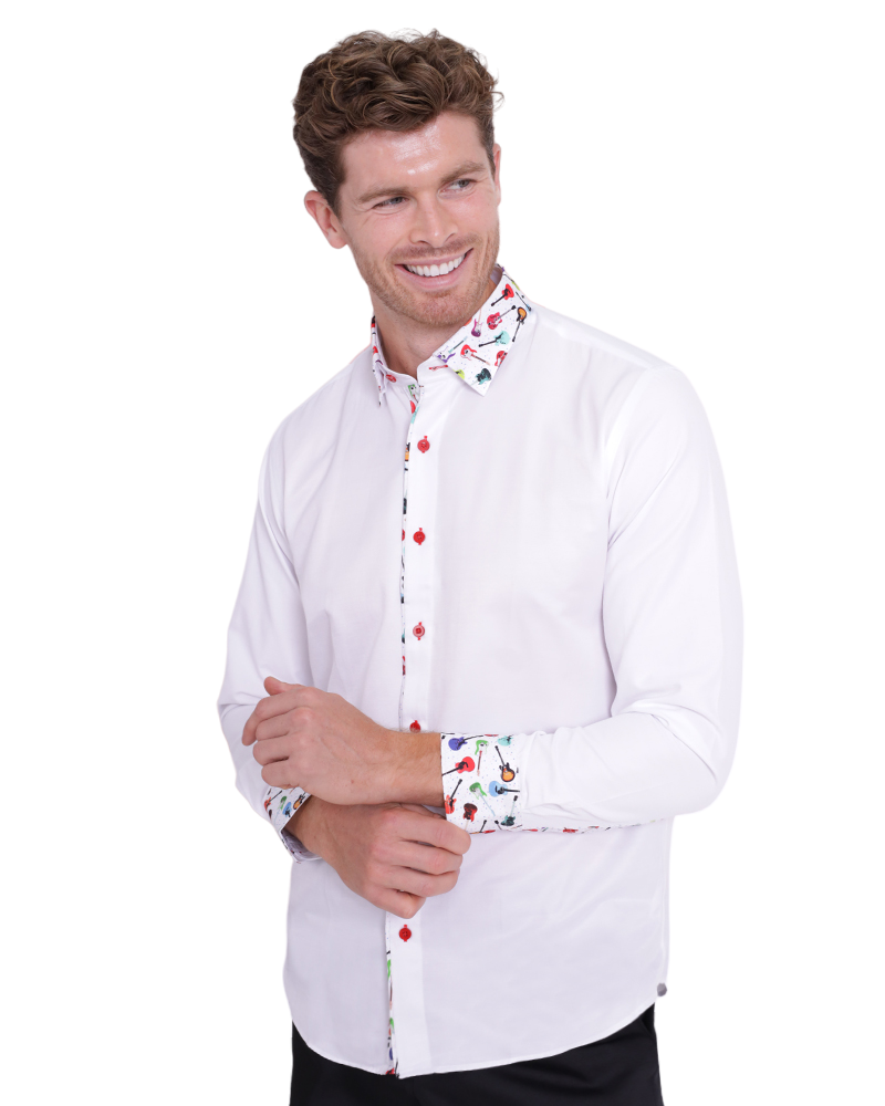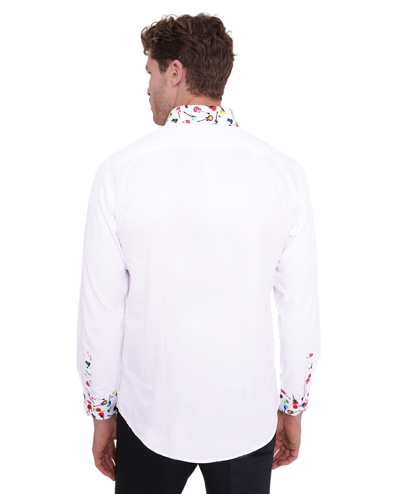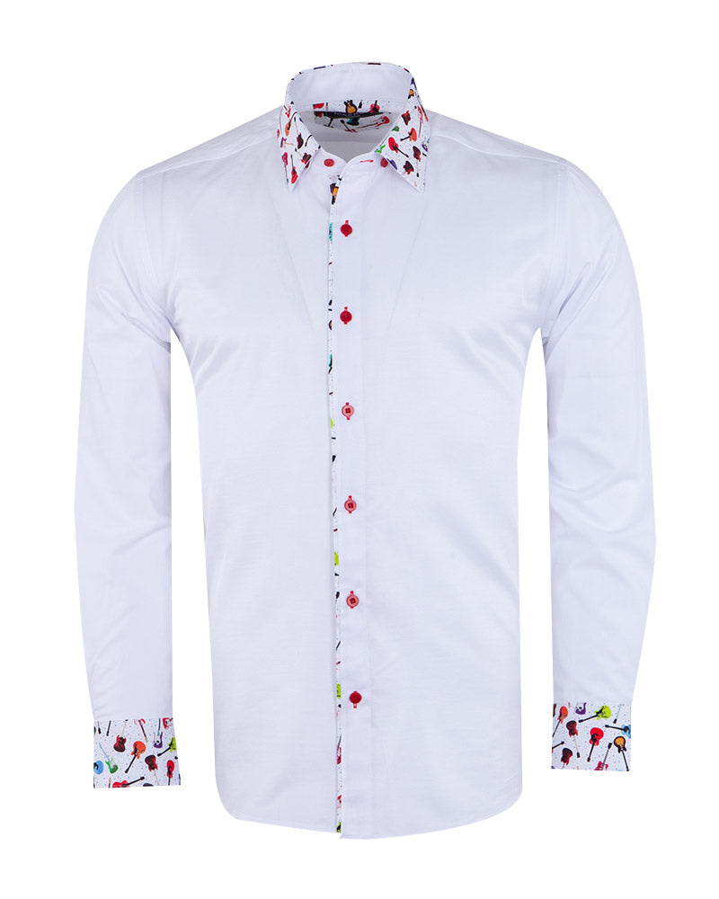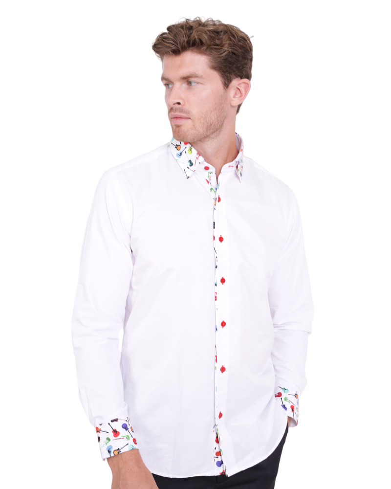 White Guitar Colourful Print on Collar & Cuff Men's Shirt