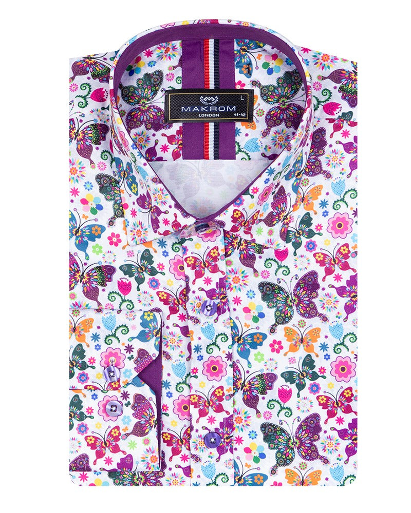 Introducing the White Hippy Butterfly Design Men's Shirt, a vibrant addition to your wardrobe. This shirt features a stunning hippy colourful butterfly print that is sure to turn heads.