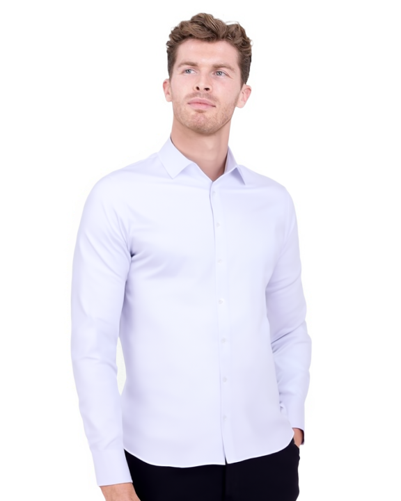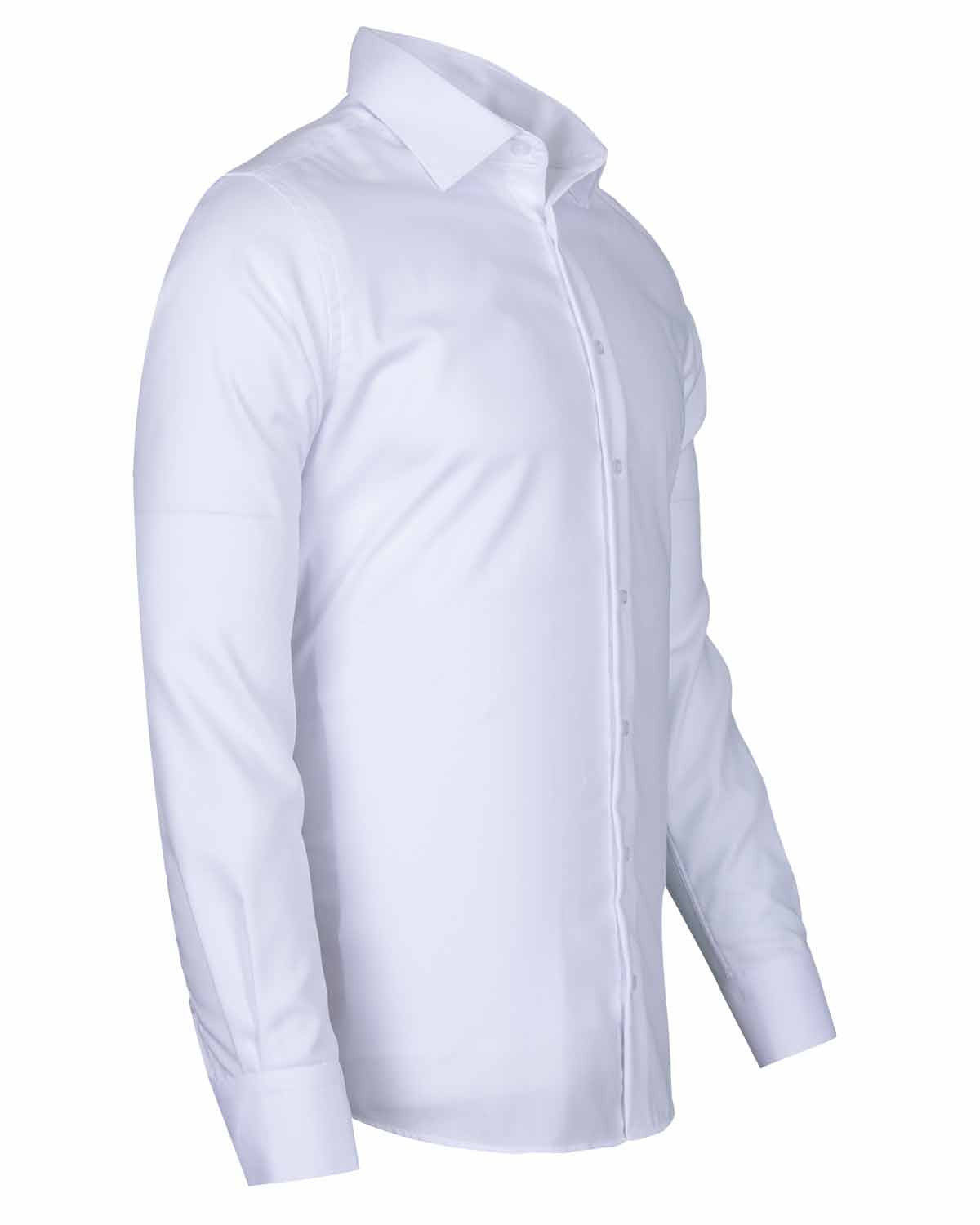 Introducing the White Non Iron Casual Plain Shirt, a perfect blend of style and comfort for your daily wear. This classic single cuff shirt is crafted from 100% cotton, ensuring a soft and breathable feel.