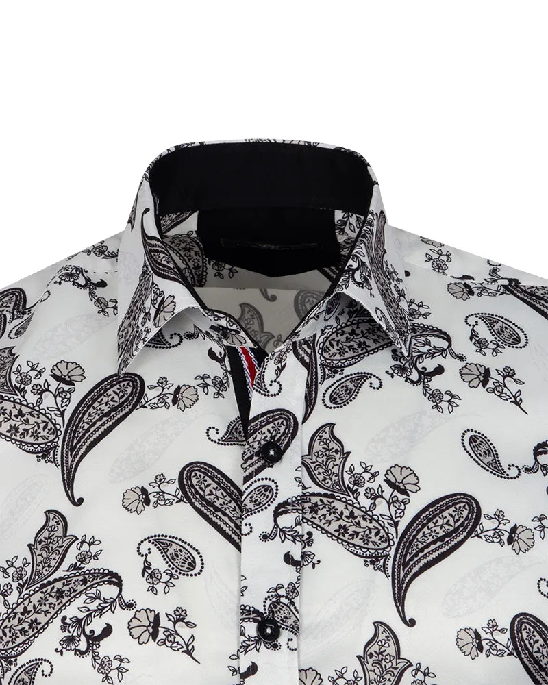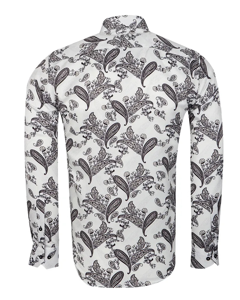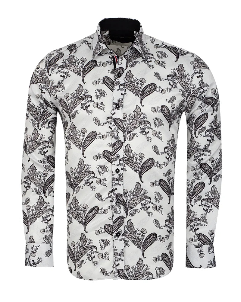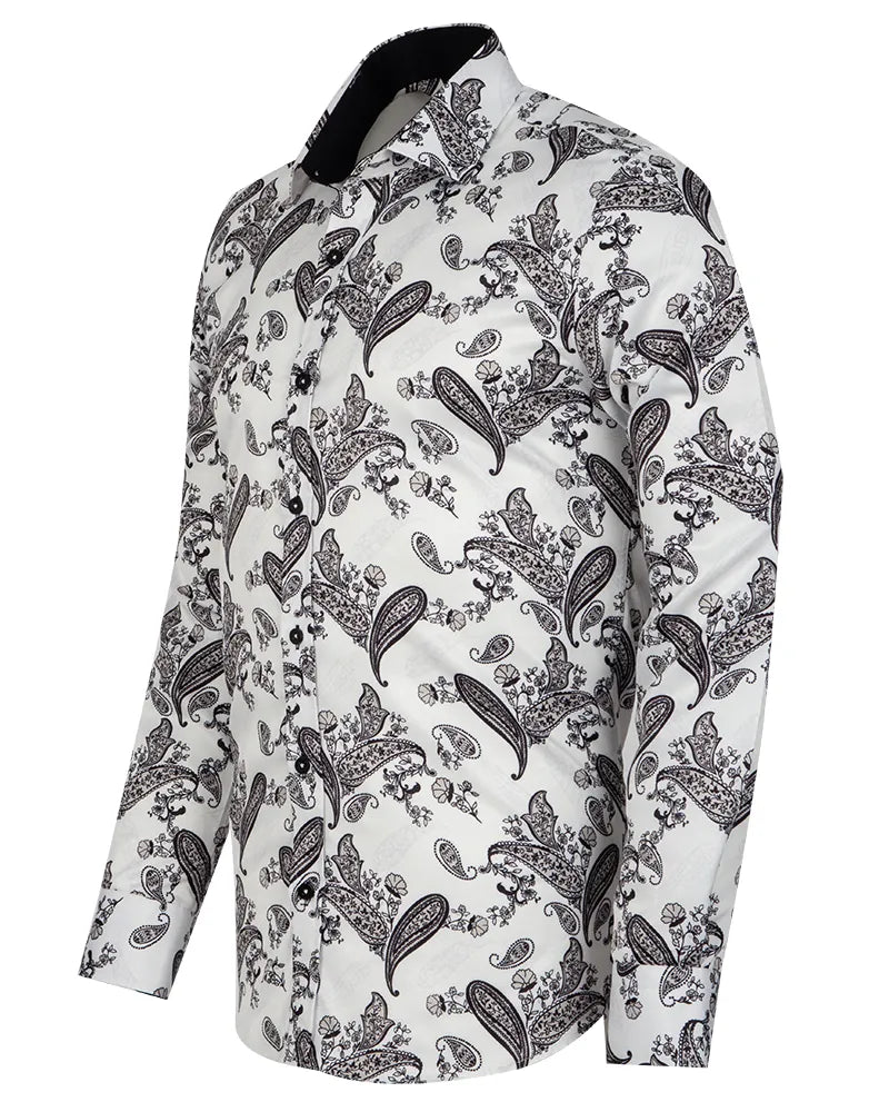 Introducing the White Paisley Print Long Sleeve Shirt, a vibrant addition to your wardrobe. This shirt features a stunning floral print that brings a touch of nature to your style.