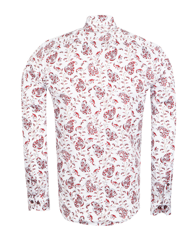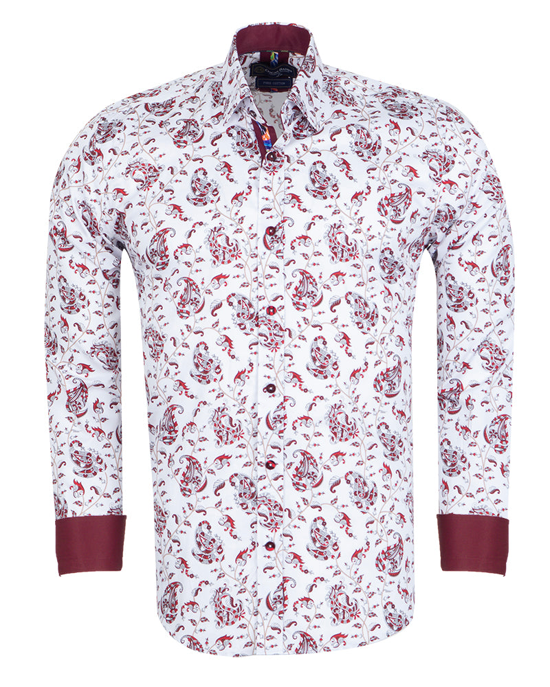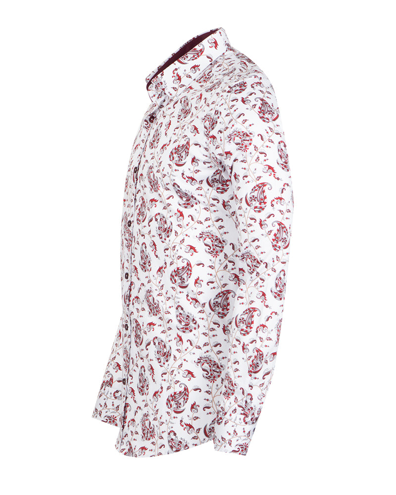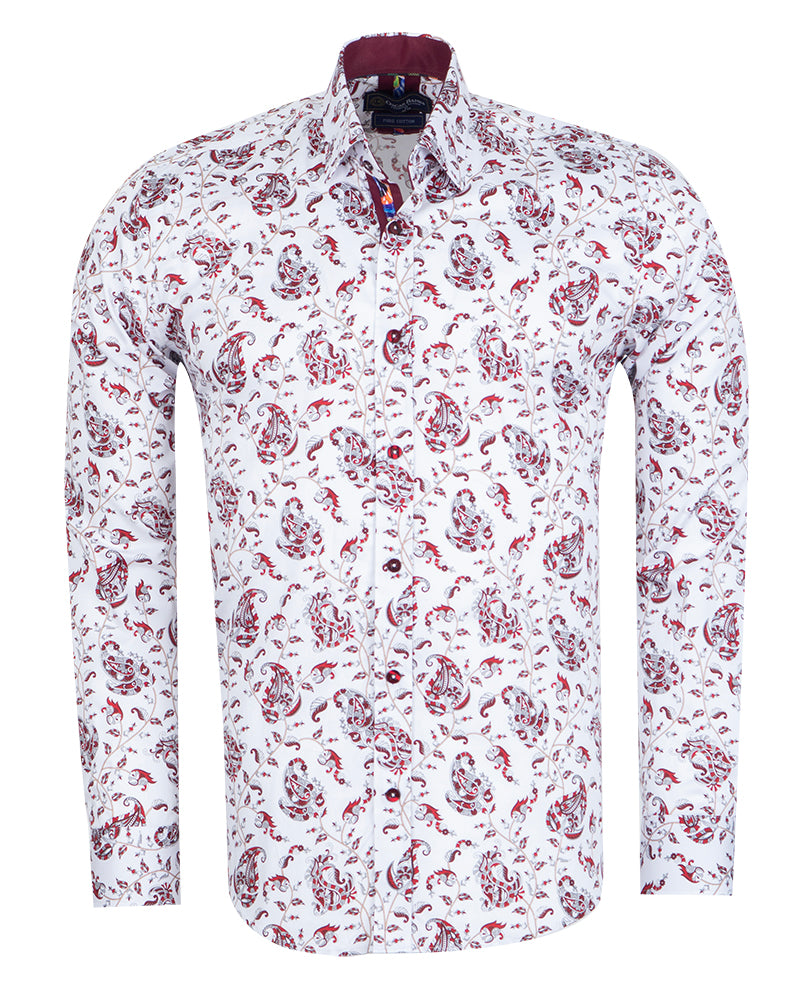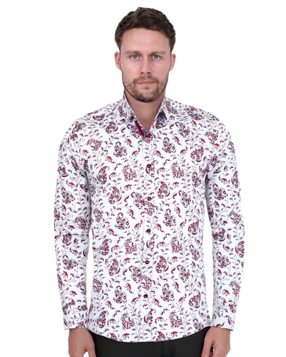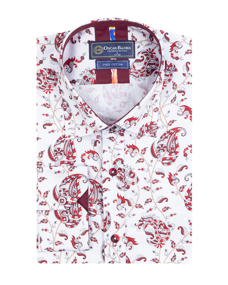 Elevate your wardrobe with the White Paisley Print Shirt, a perfect blend of style and sophistication. Crafted from 100% satin cotton, this shirt offers a luxurious feel and a polished look.