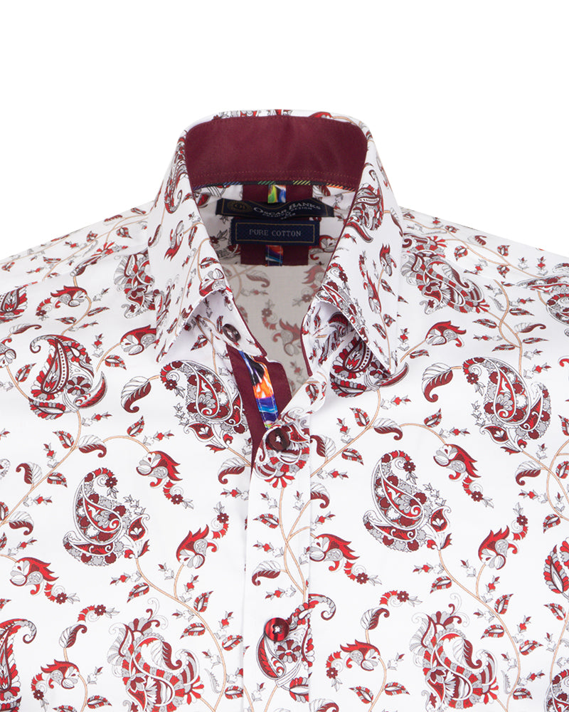 White Paisley Print Shirt with Matching Handkerchief
