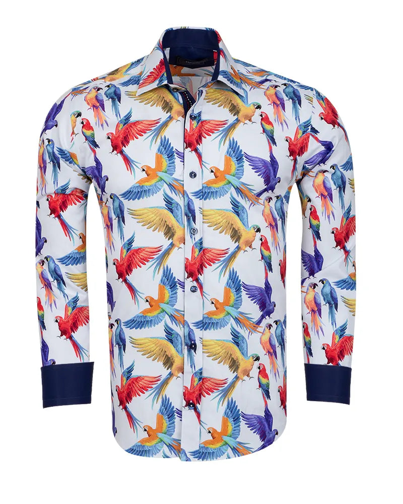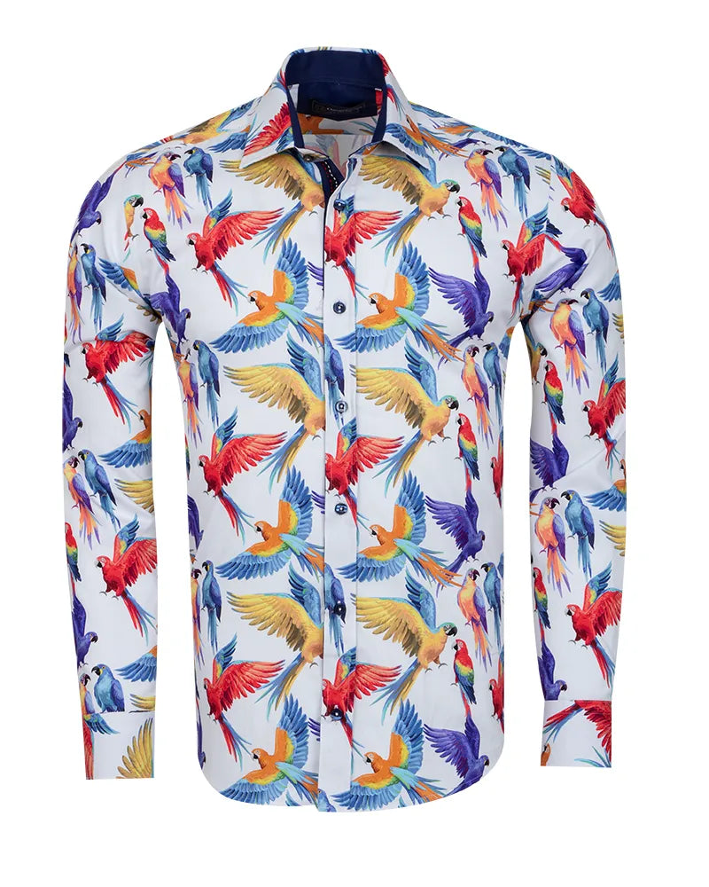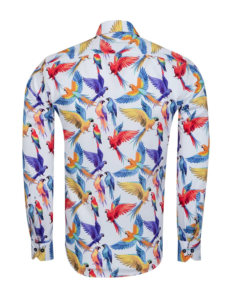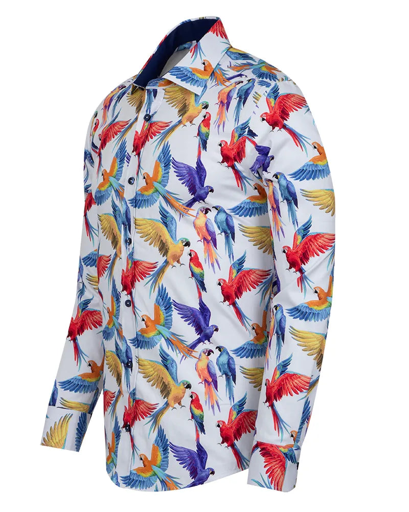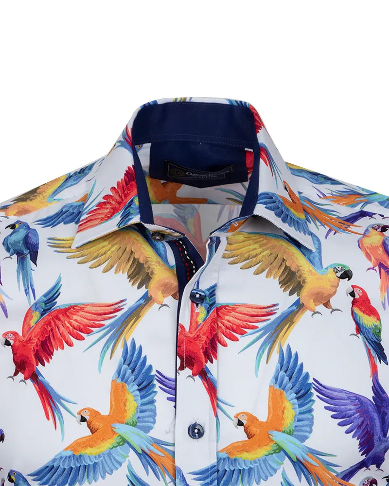 White Parrot Print Shirt with Matching Handkerchief