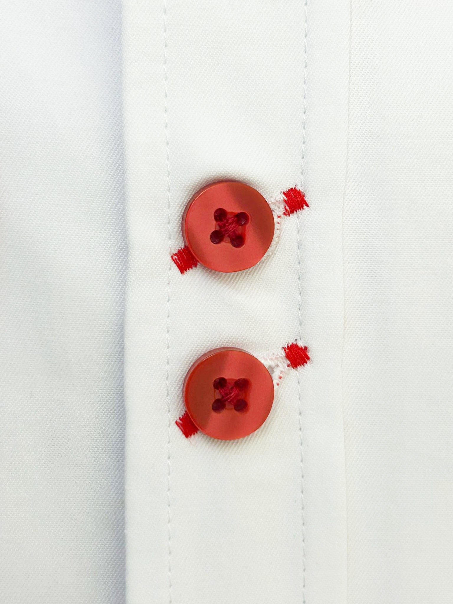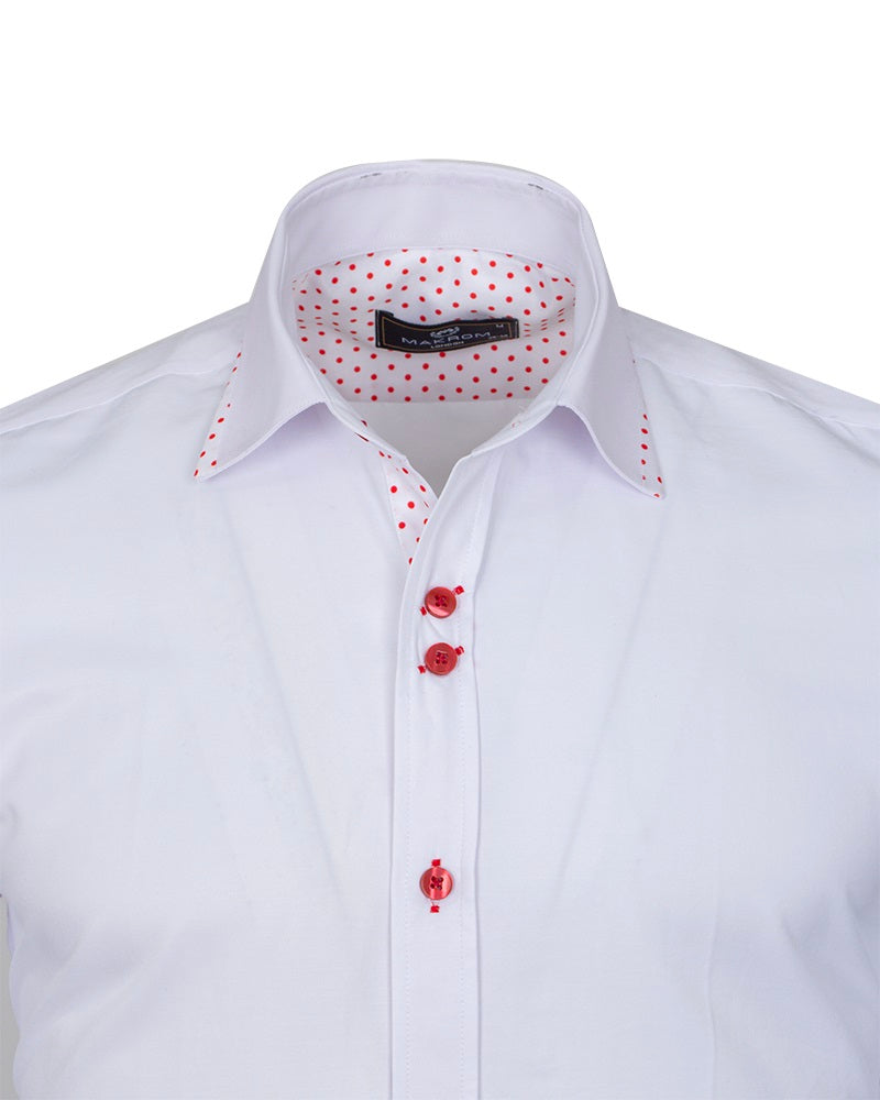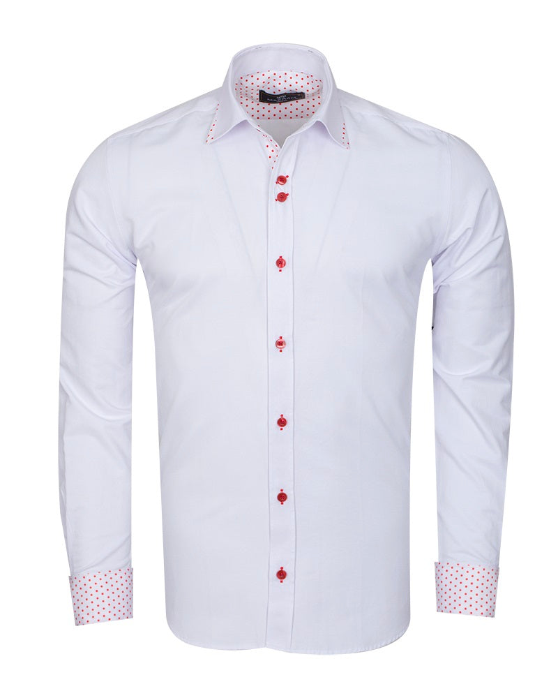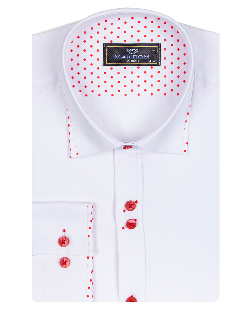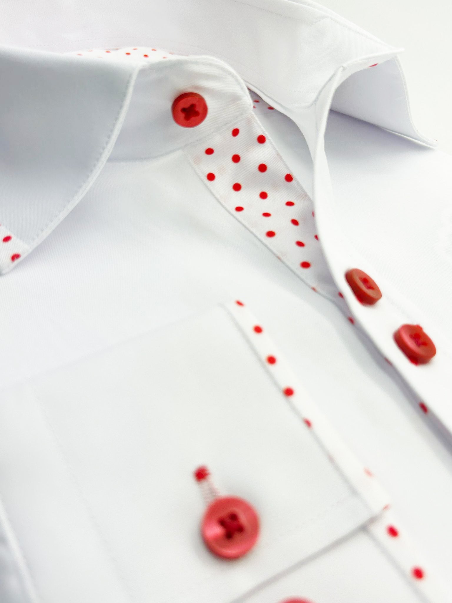 White Plain Panel Shirt with Red Dot Print Collar & Cuffs