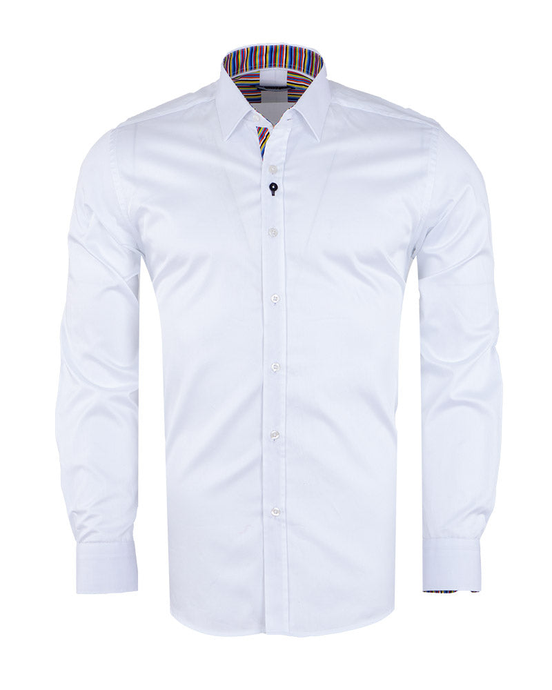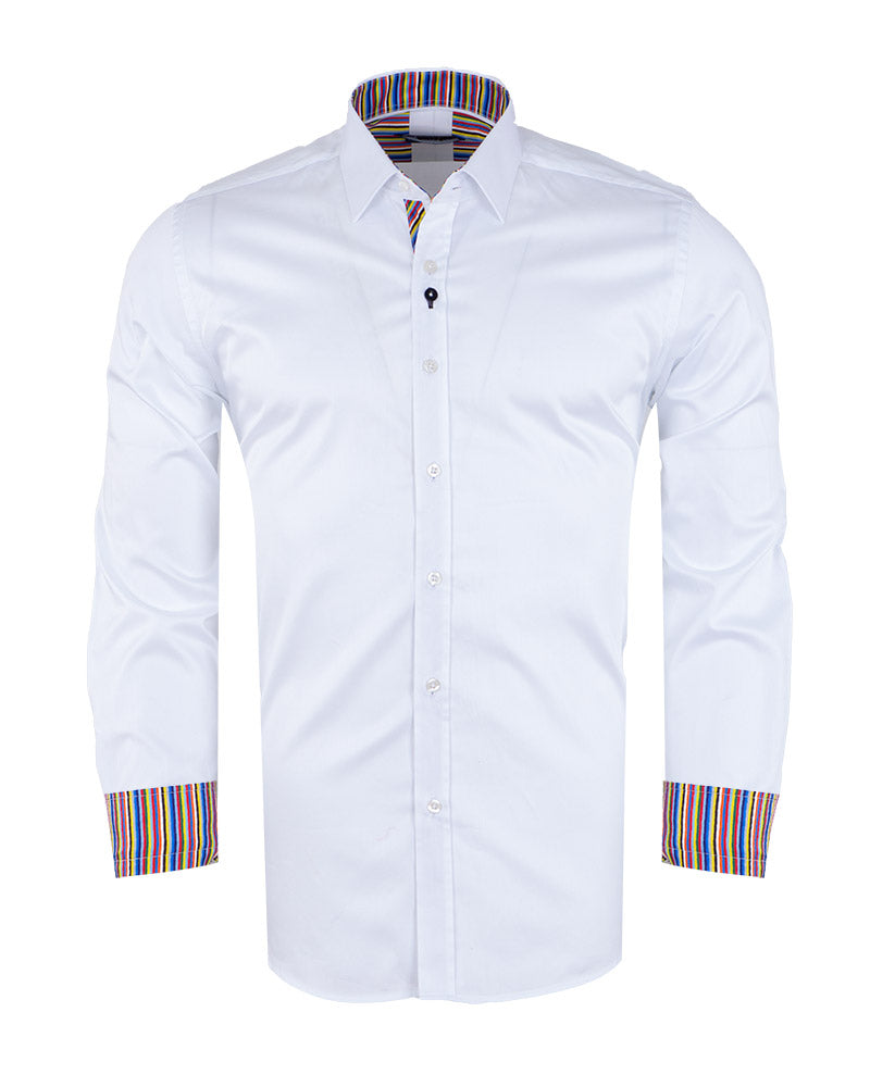 Plain White Shirt with Colourful Stripe Insert Shirt