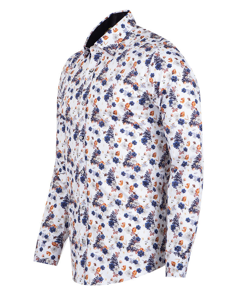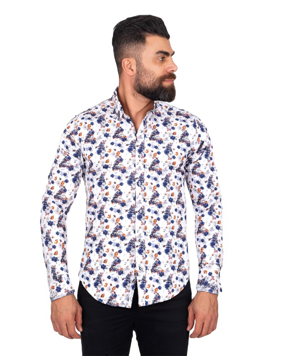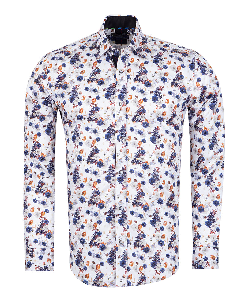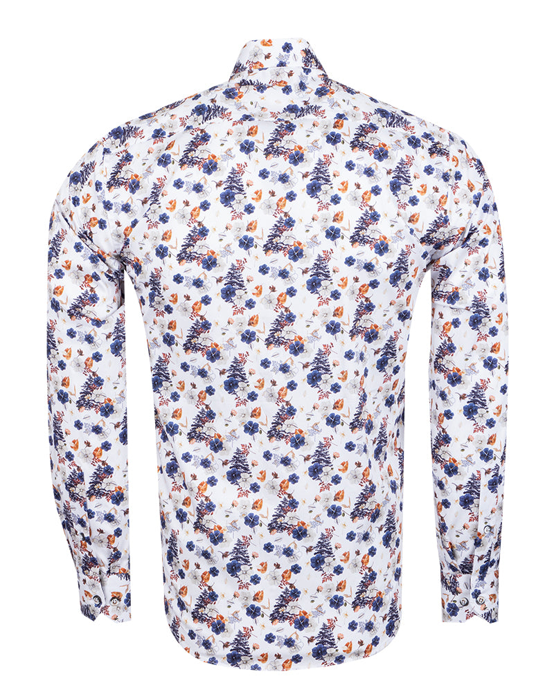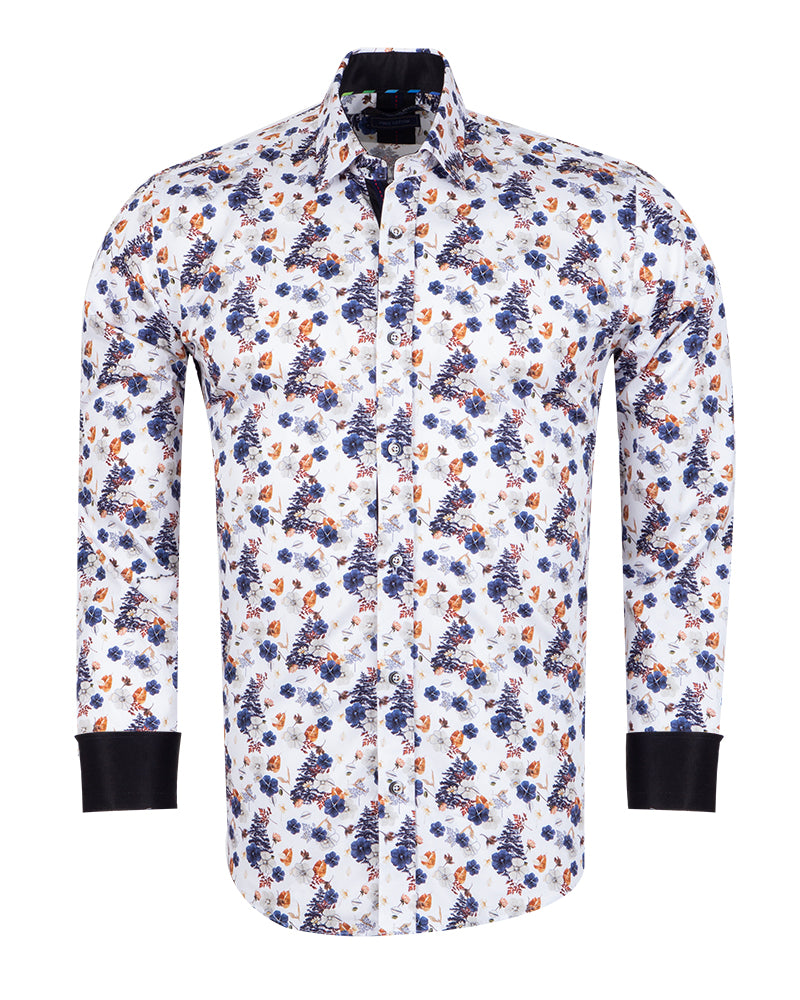 Introducing the White Poppy Print Men's Shirt, a perfect blend of elegance and style. Crafted from 100% satin cotton, this shirt offers a luxurious feel and a sophisticated look.