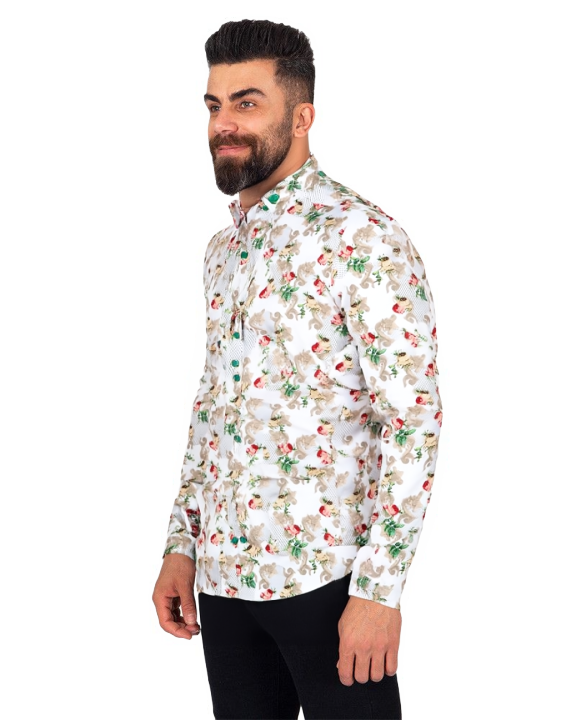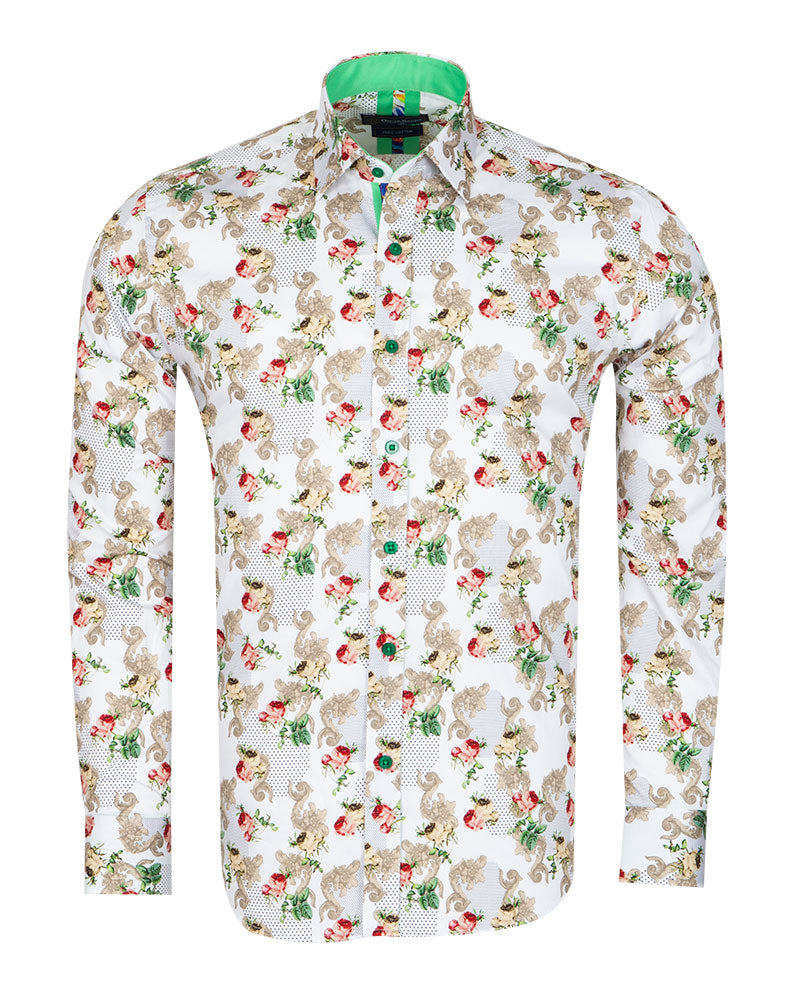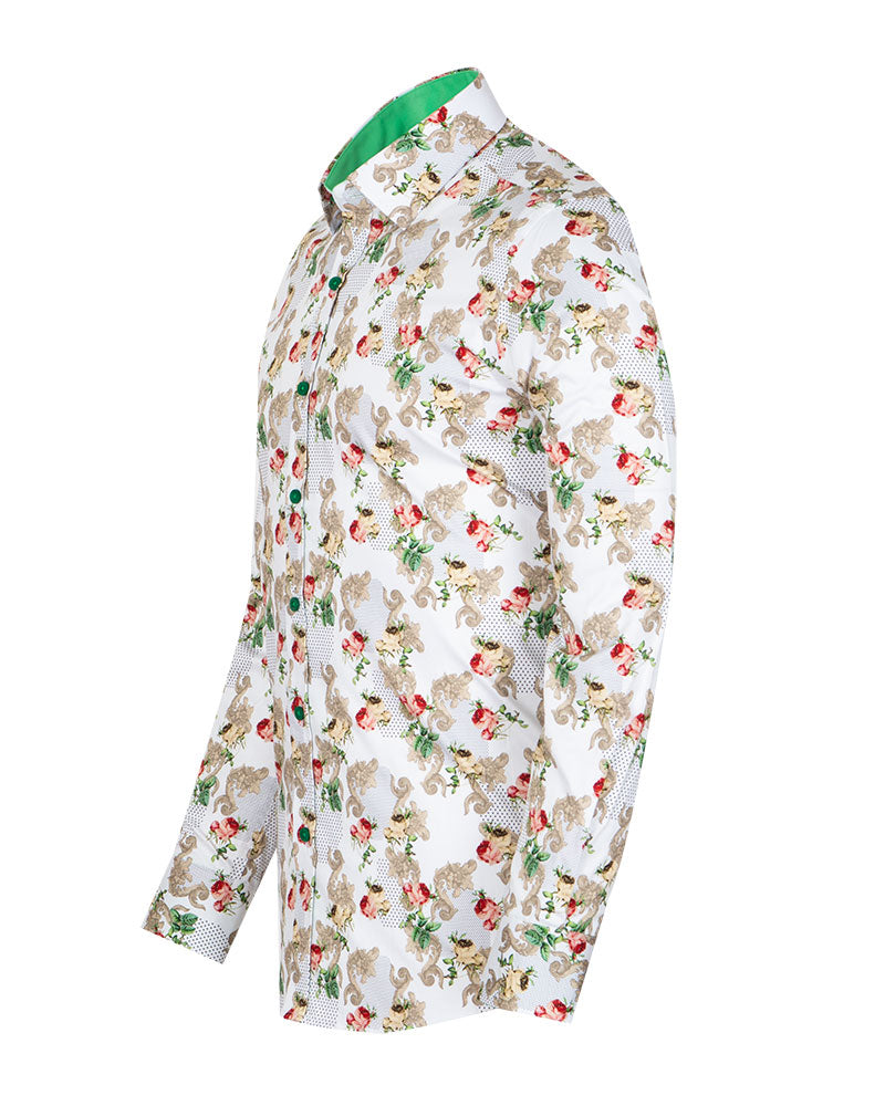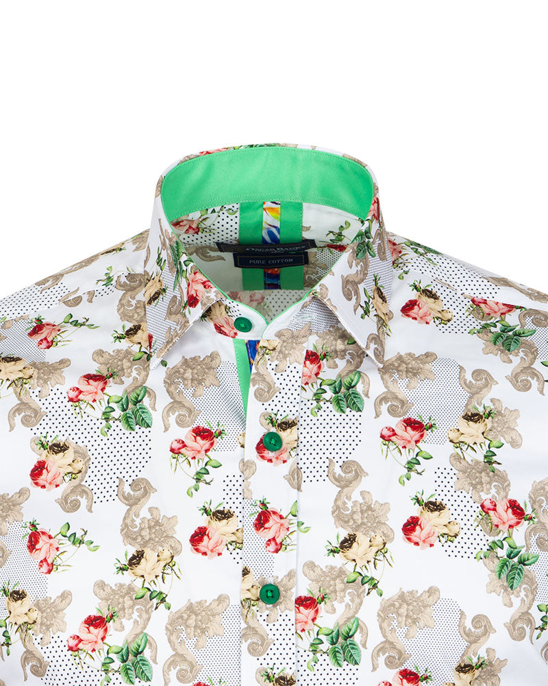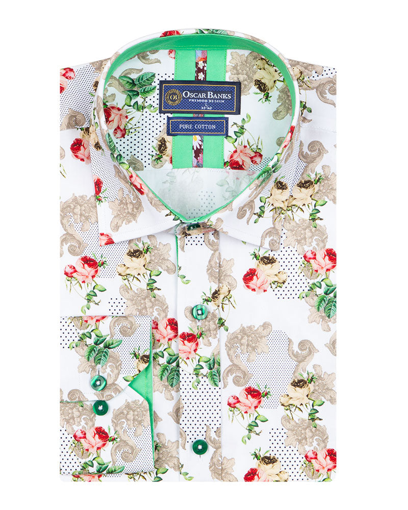 Introducing the White Rose Floral Print with Matching Handkerchief, a perfect blend of elegance and style. Crafted from 100% satin cotton, this shirt offers a luxurious feel and a sophisticated look.