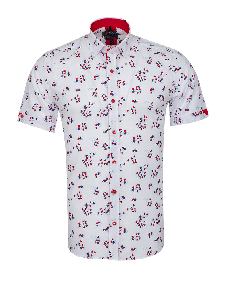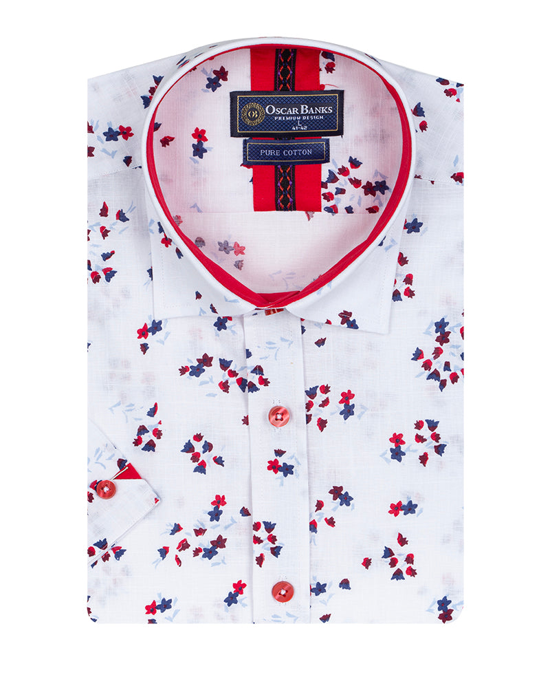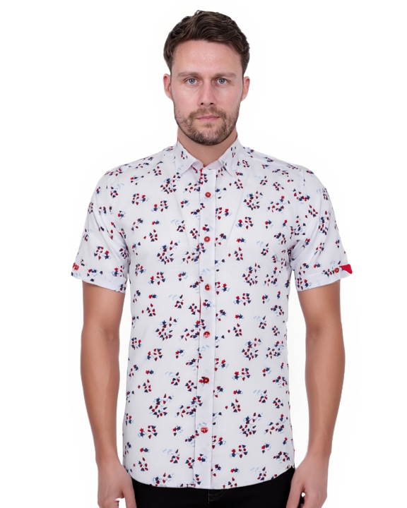 Introducing the White Small Flower Pattern Print Short Sleeve Shirt, a unique blend of elegance and casual style. Crafted from 100% satin cotton, this shirt offers a luxurious feel while ensuring comfort throughout the day.