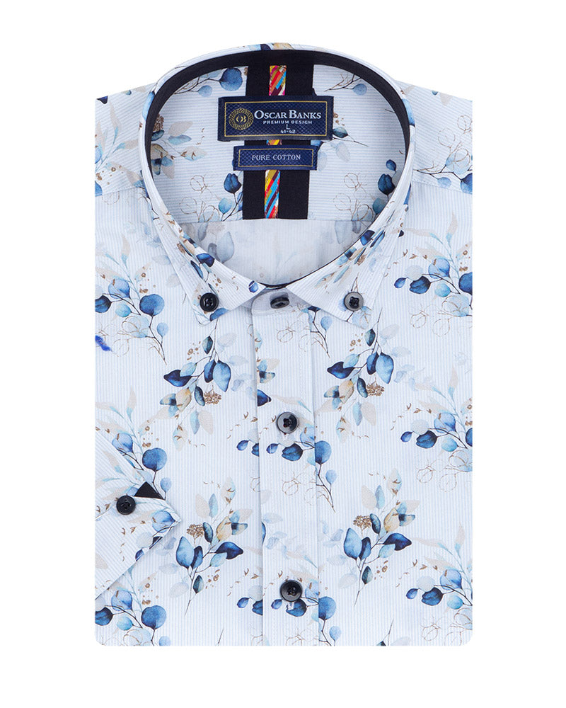 Introducing the White Spring Flower Print Short Sleeve Shirt, a perfect addition to your spring wardrobe. Crafted from 100% satin cotton, this shirt offers both comfort and style.