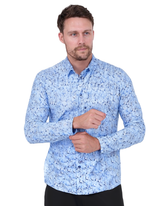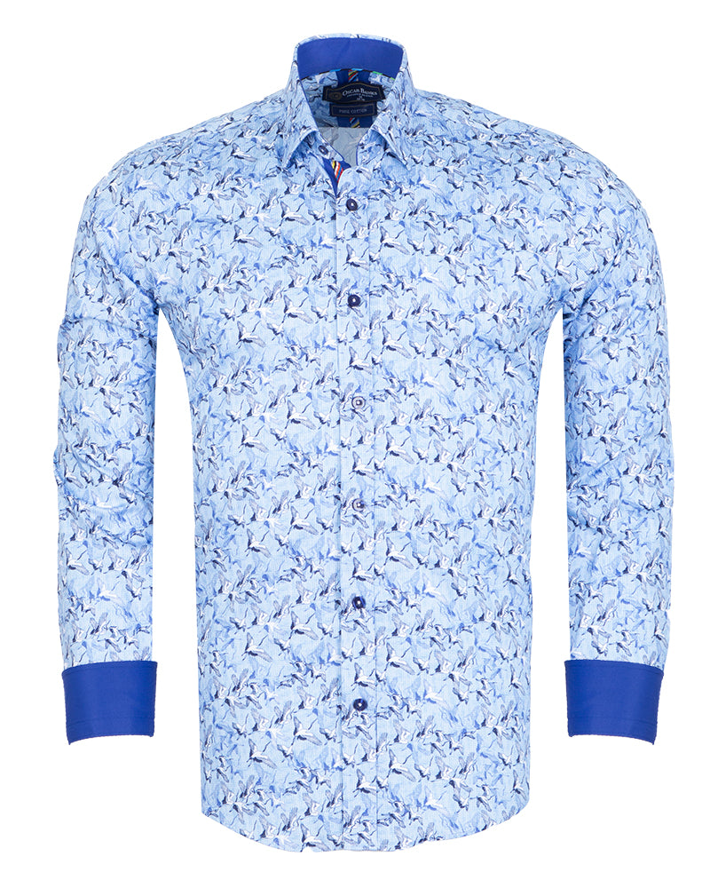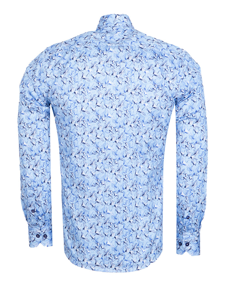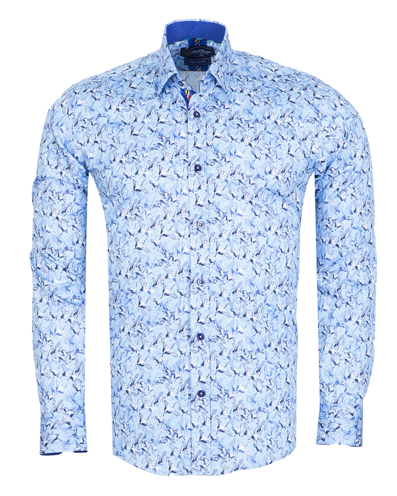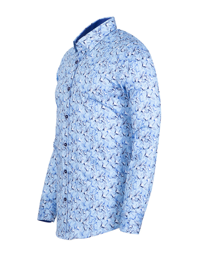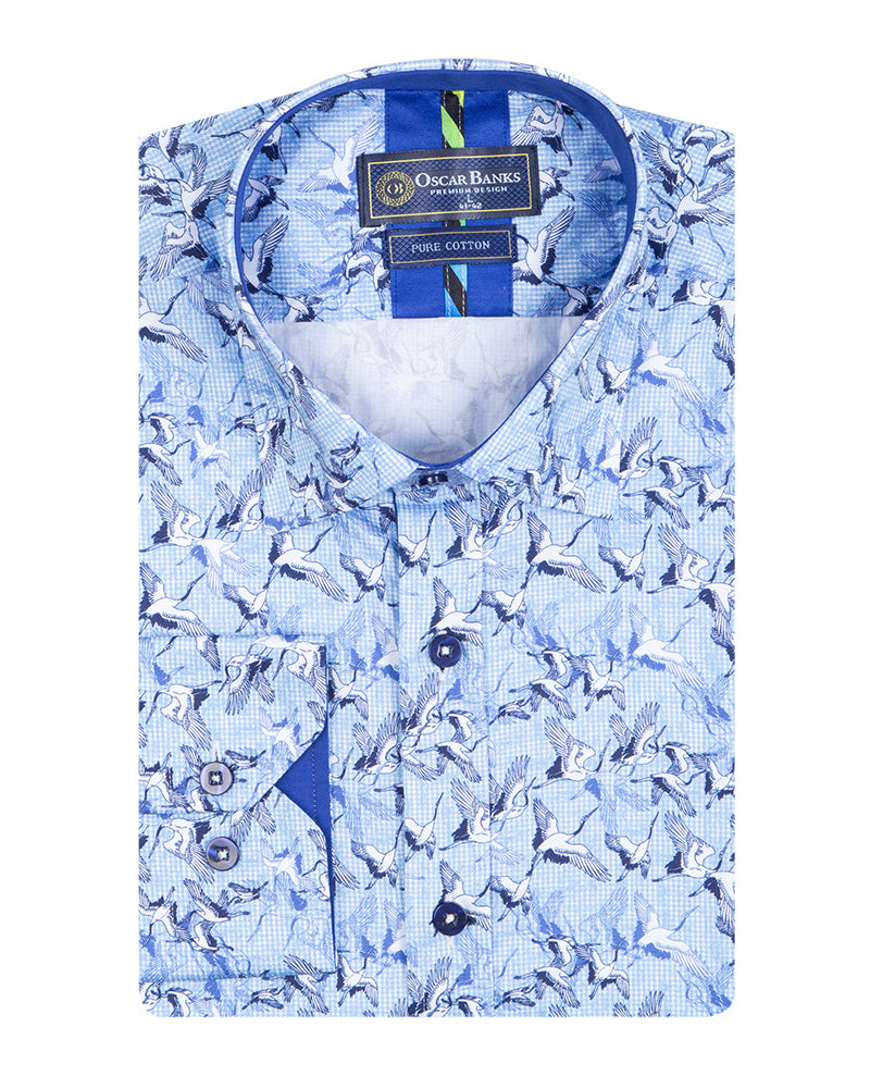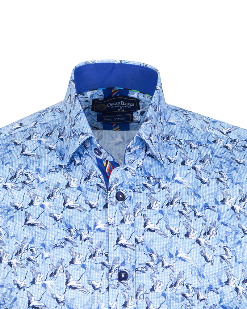 Introducing the Blue Stork Print Shirt with Matching Handkerchief, a stylish addition to any wardrobe. Crafted from 100% satin cotton, this shirt offers both comfort and elegance.