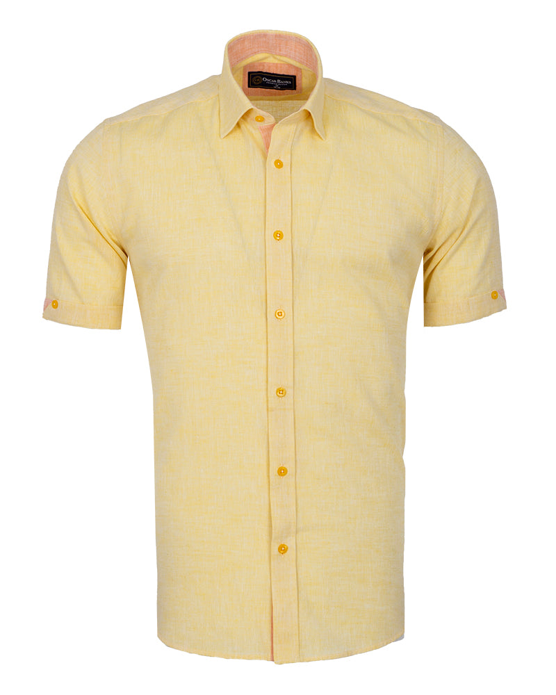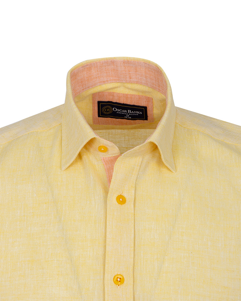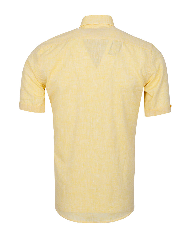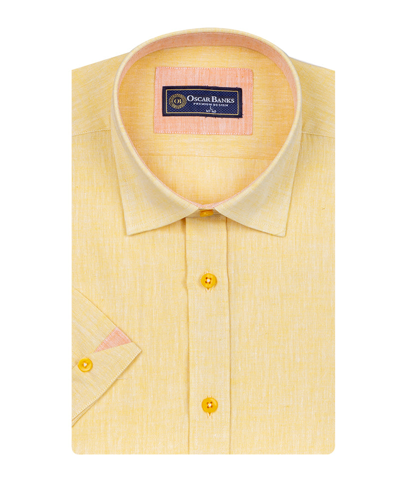 Yellow Linen Plain Short Sleeve Shirt